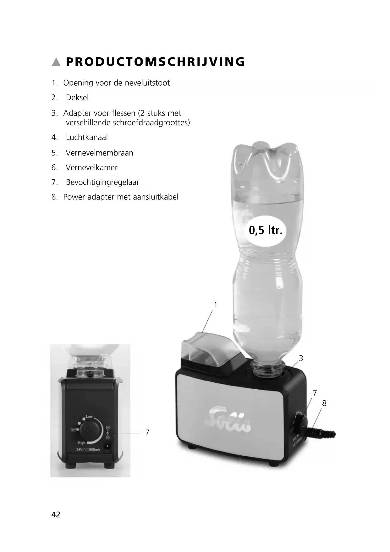 - Bij hard leidingwater kan er in de vernevelaar kalkafzetting ontstaan. In dit ge- val raden wij het volgende aan: – Ontkalk de vernevelaar wekelijks met SOLIPOL vloeibaar ontkalkingmiddel. – Gooi het water uit de fles en uit de vernevelkamer na ieder gebruik weg en vul de fles met vers kraanwater voor ieder gebruik.
