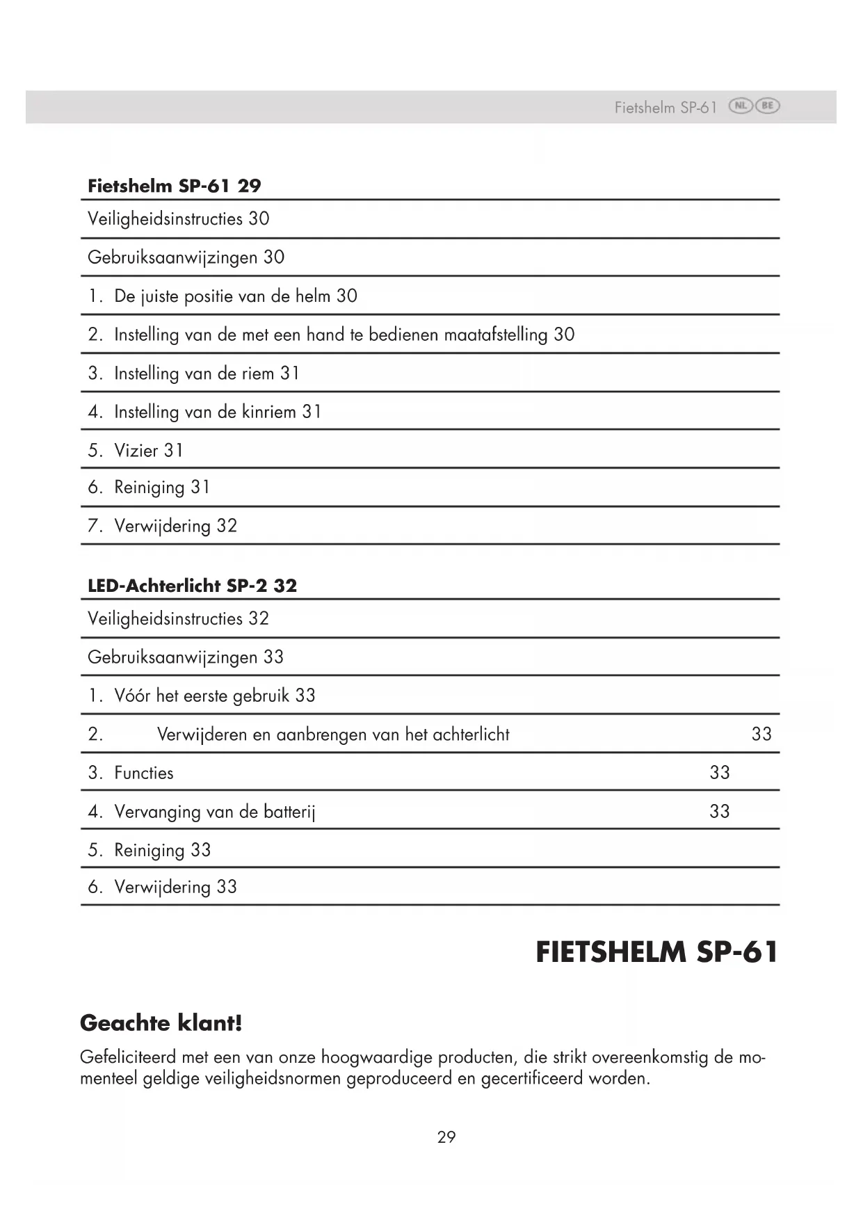 LED-Achterlicht SP-2 32 Veiligheidsinstructies 32 Gebruiksaanwijzingen 33