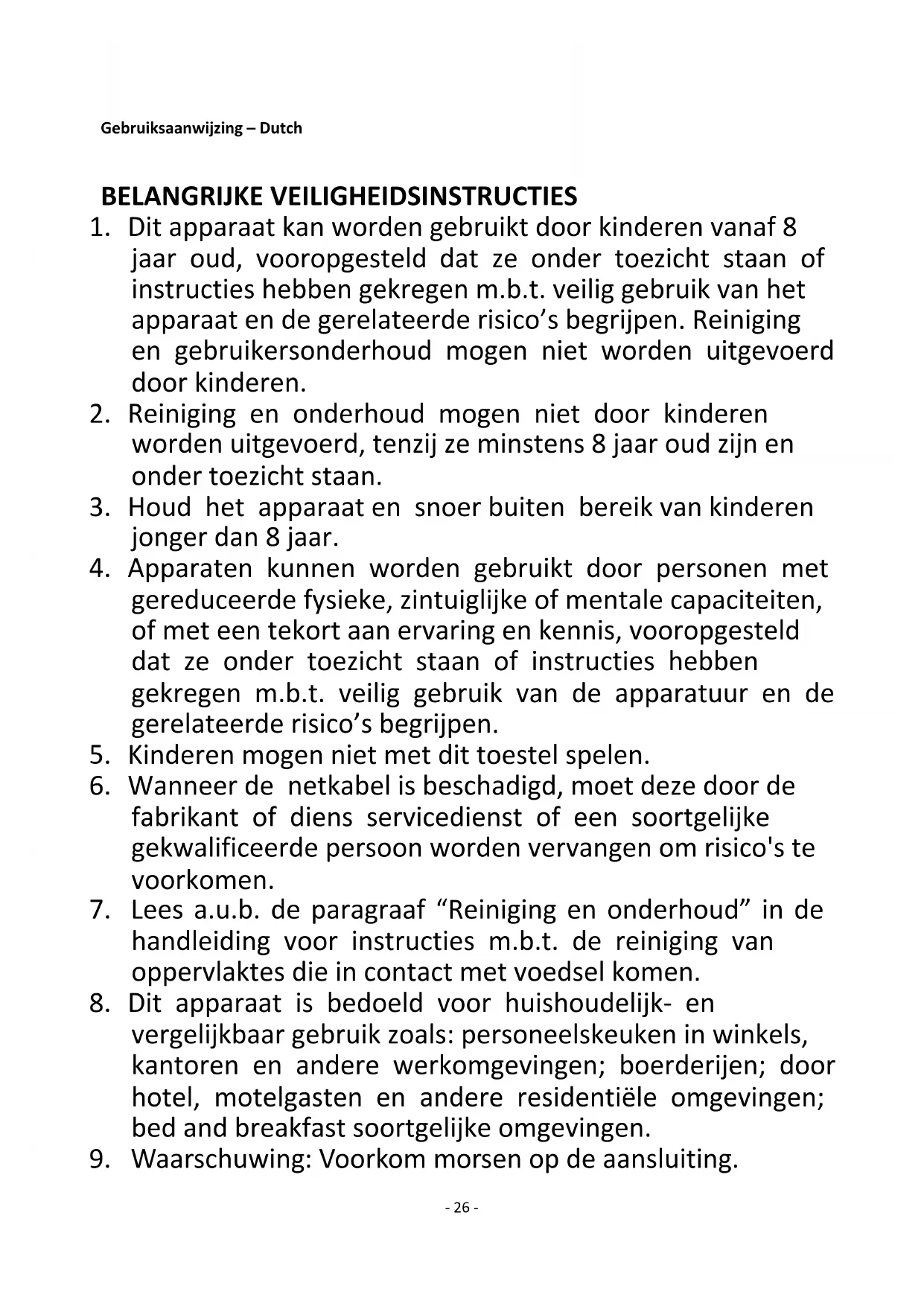 26. Het apparaat is geen speelgoed. Laat kinderen er niet mee