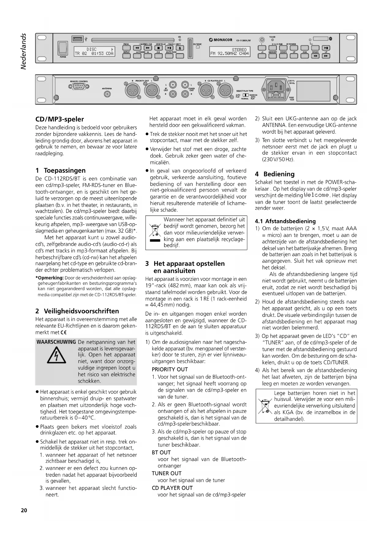 GEBRUIKSAANWIJZING CD112RDSBT Monacor