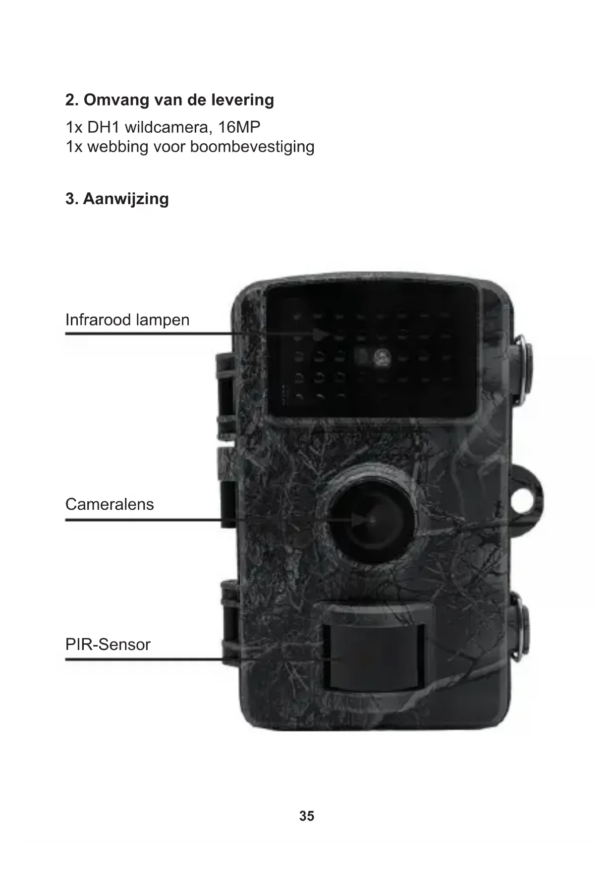 1x DH1 wildcamera, 16MP 1x webbing voor boombevestiging