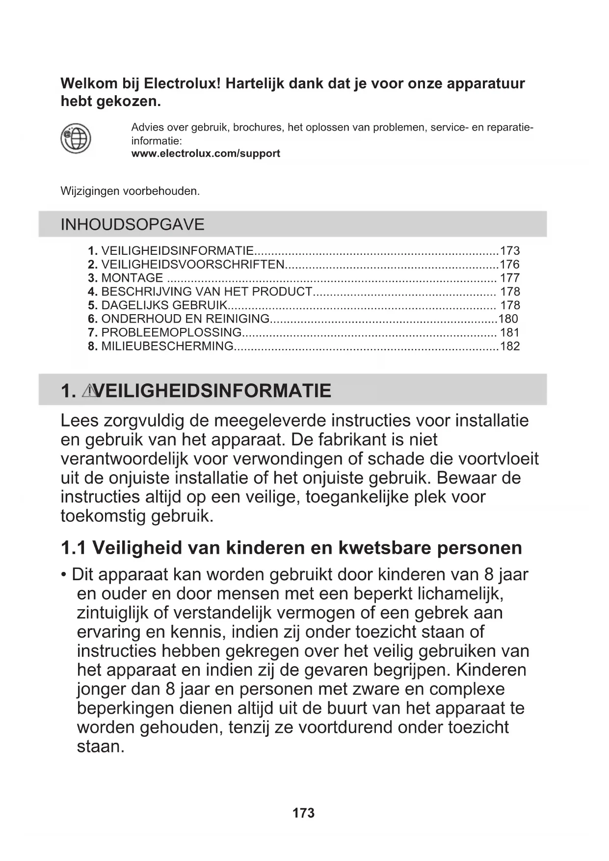 - Dit apparaat kan worden gebruikt door kinderen van 8 jaar en ouder en door mensen met een beperkt lichamelijk, zintuiglijk of verstandelijk vermogen of een gebrek aan ervaring en kennis, indien zij onder toezicht staan of instructies hebben gekregen over het veilig gebruiken van het apparaat en indien zij de gevaren begrijpen. Kinderen jonger dan 8 jaar en personen met zware en complexe beperkingen dienen altijd uit de buurt van het apparaat te worden gehouden, tenzij ze voortdurend onder toezicht staan. 173• Houd toezicht op kinderen om te voorkomen dat zij met het apparaat gaan spelen.