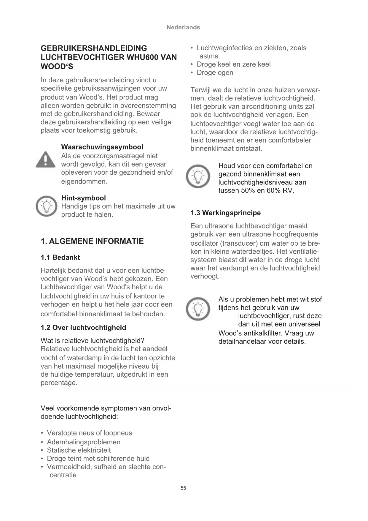 Hartelijk bedankt dat u voor een luchtbe- vochtiger van Wood’s hebt gekozen. Een luchtbevochtiger van Wood's helpt u de luchtvochtigheid in uw huis of kantoor te verhogen en helpt u het hele jaar door een comfortabel binnenklimaat te behouden.
