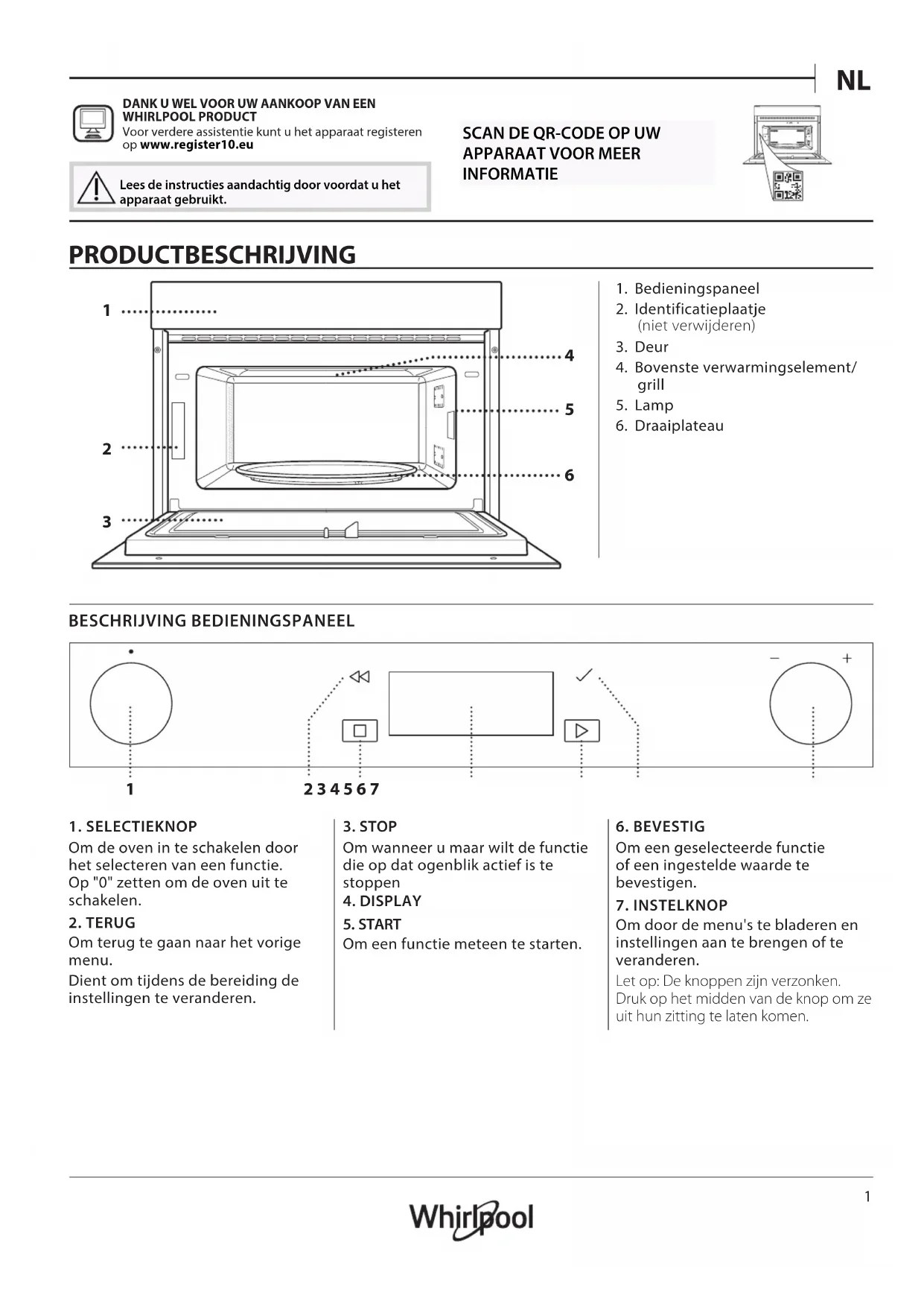 DANK U WEL VOOR UW AANKOOP VAN EEN WHIRLPOOL PRODUCT Voor verdere assistentie kunt u het apparaat registeren op www.register10.eu Lees de instructies aandachtig door voordat u het apparaat gebruikt.