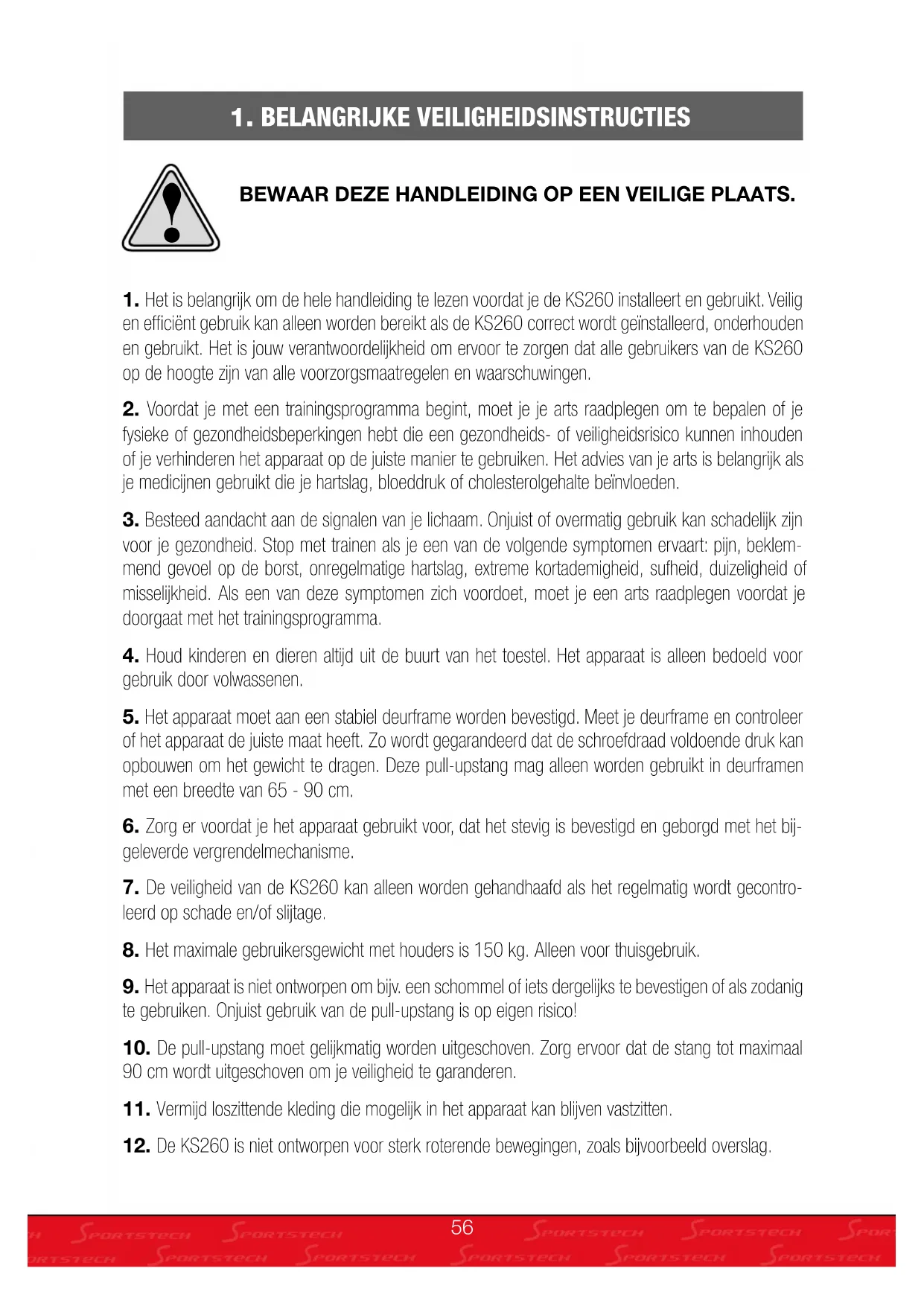 GEBRUIKSAANWIJZING KS260 Sportstech