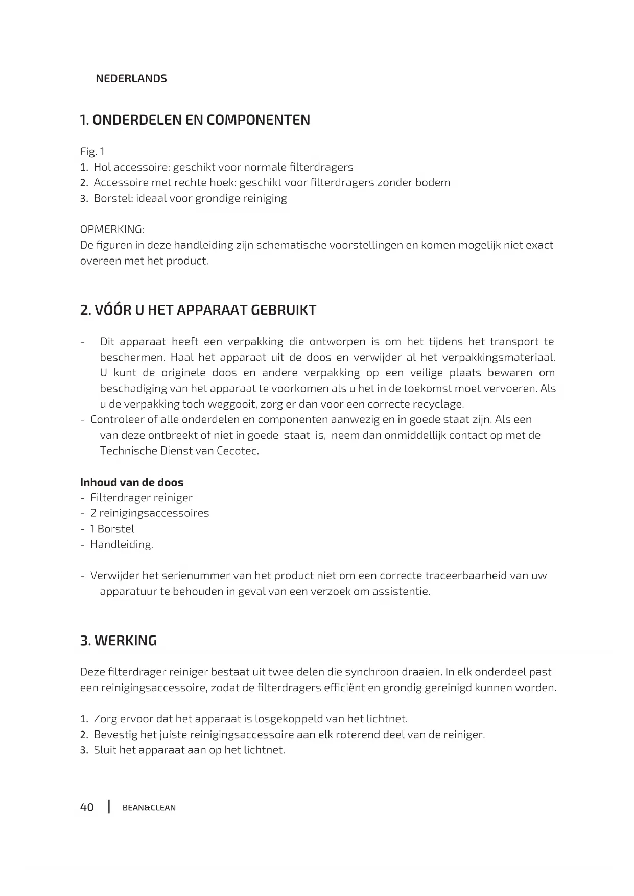 GEBRUIKSAANWIJZING Bean&Clean CECOTEC