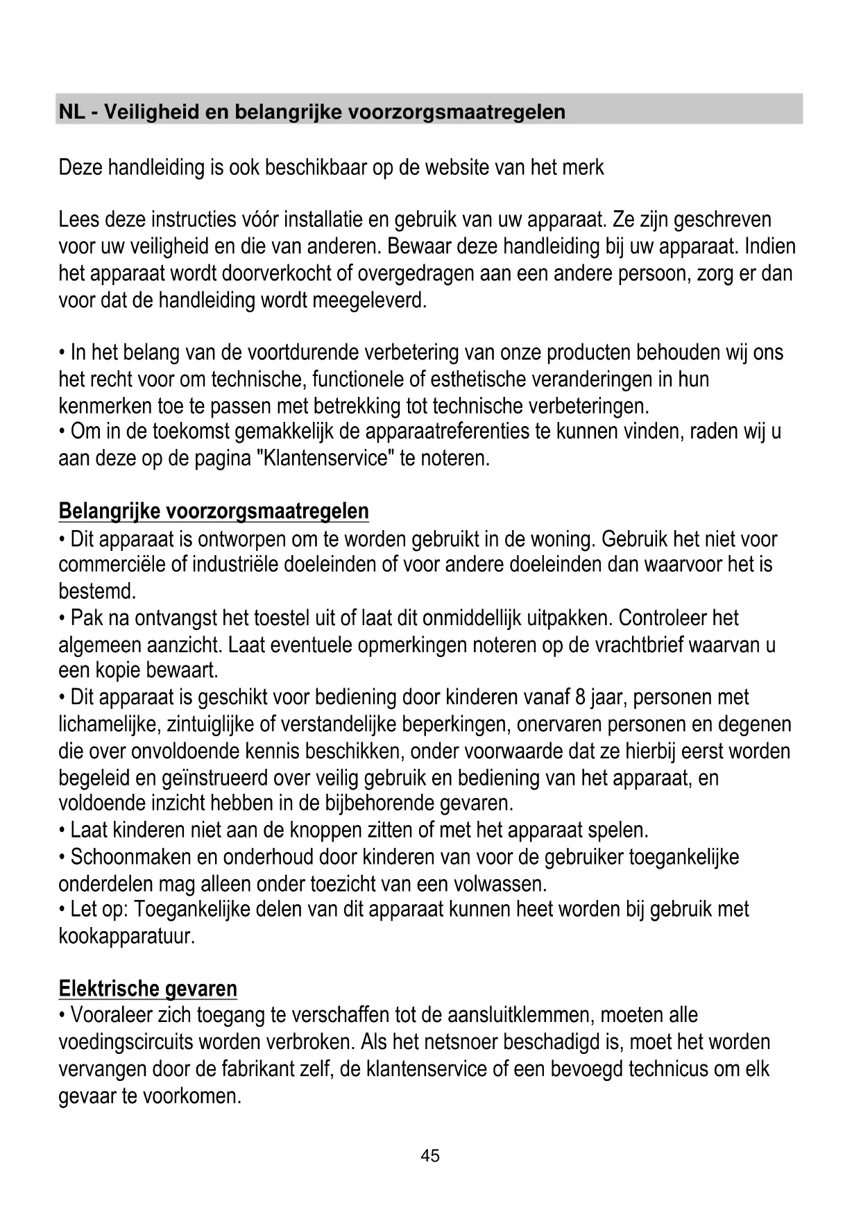 - Dit apparaat is geschikt voor bediening door kinderen vanaf 8 jaar, personen met lichamelijke, zintuiglijke of verstandelijke beperkingen, onervaren personen en degenen die over onvoldoende kennis beschikken, onder voorwaarde dat ze hierbij eerst worden begeleid en geïnstrueerd over veilig gebruik en bediening van het apparaat, en voldoende inzicht hebben in de bijbehorende gevaren.