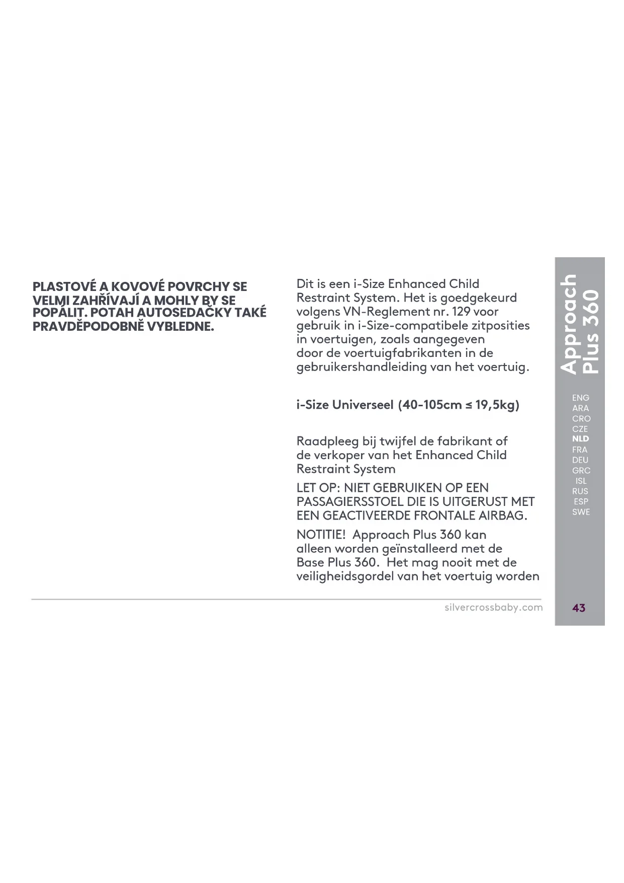 (12), trekt u aan de grijze hendel die zich onder de voorkant van de zitschaal bevindt. ENG ARA CRO CZE NLD FRA DEU GRC ISL RUS ESP SWEApproach Plus 360 silvercrossbaby.com