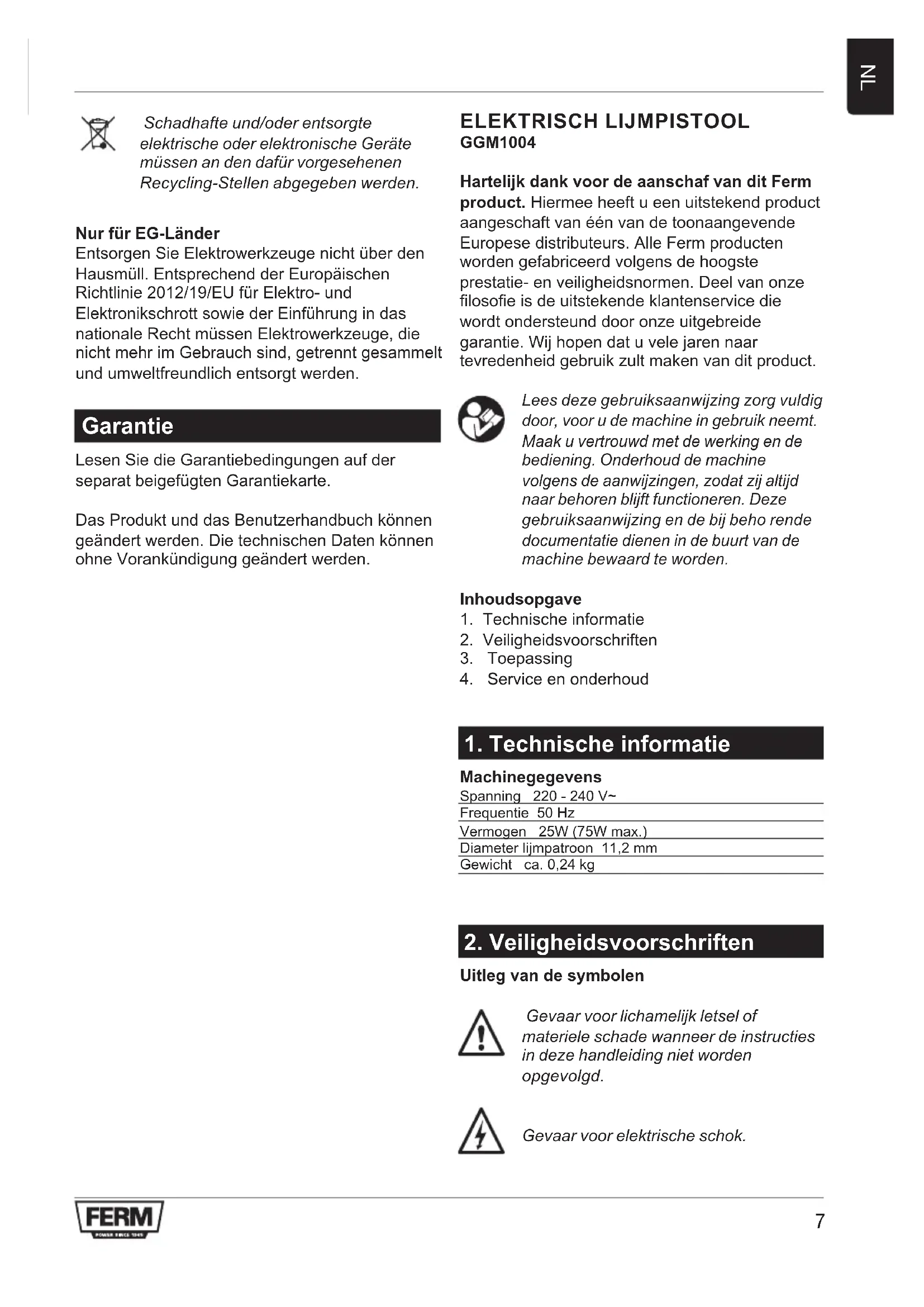 GEBRUIKSAANWIJZING GGM1004 Ferm