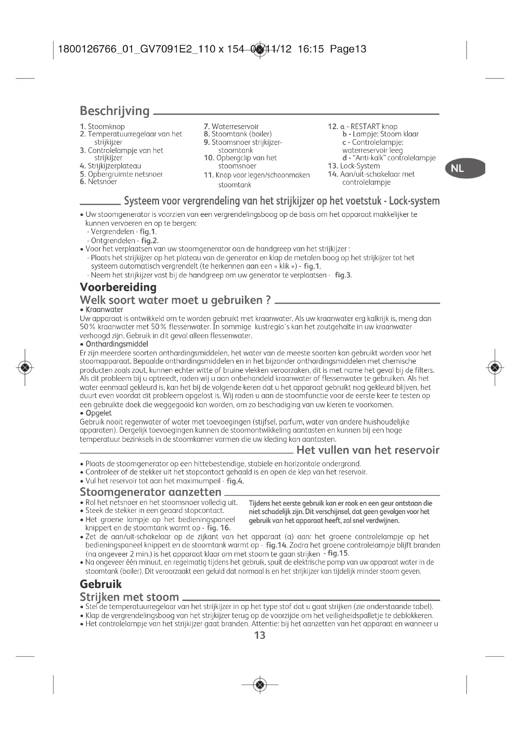 - Wanneer het rode lampje “reservoir leeg” knippert, heeft u geen stoom meer. - fig.16, heeft u geen stoom meer.