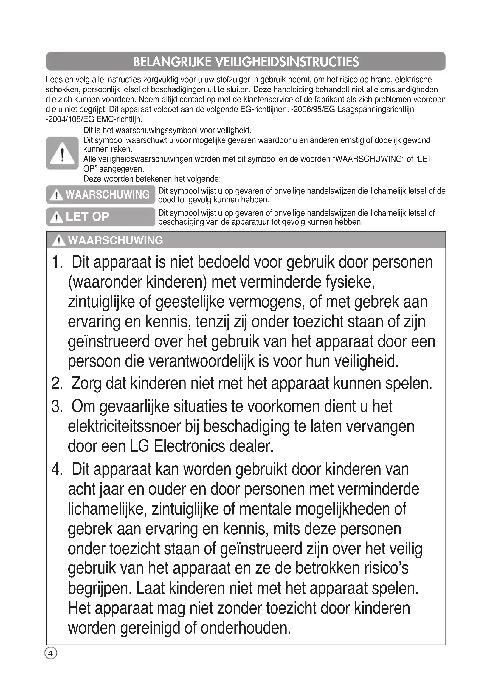 4. Dit apparaat kan worden gebruikt door kinderen van