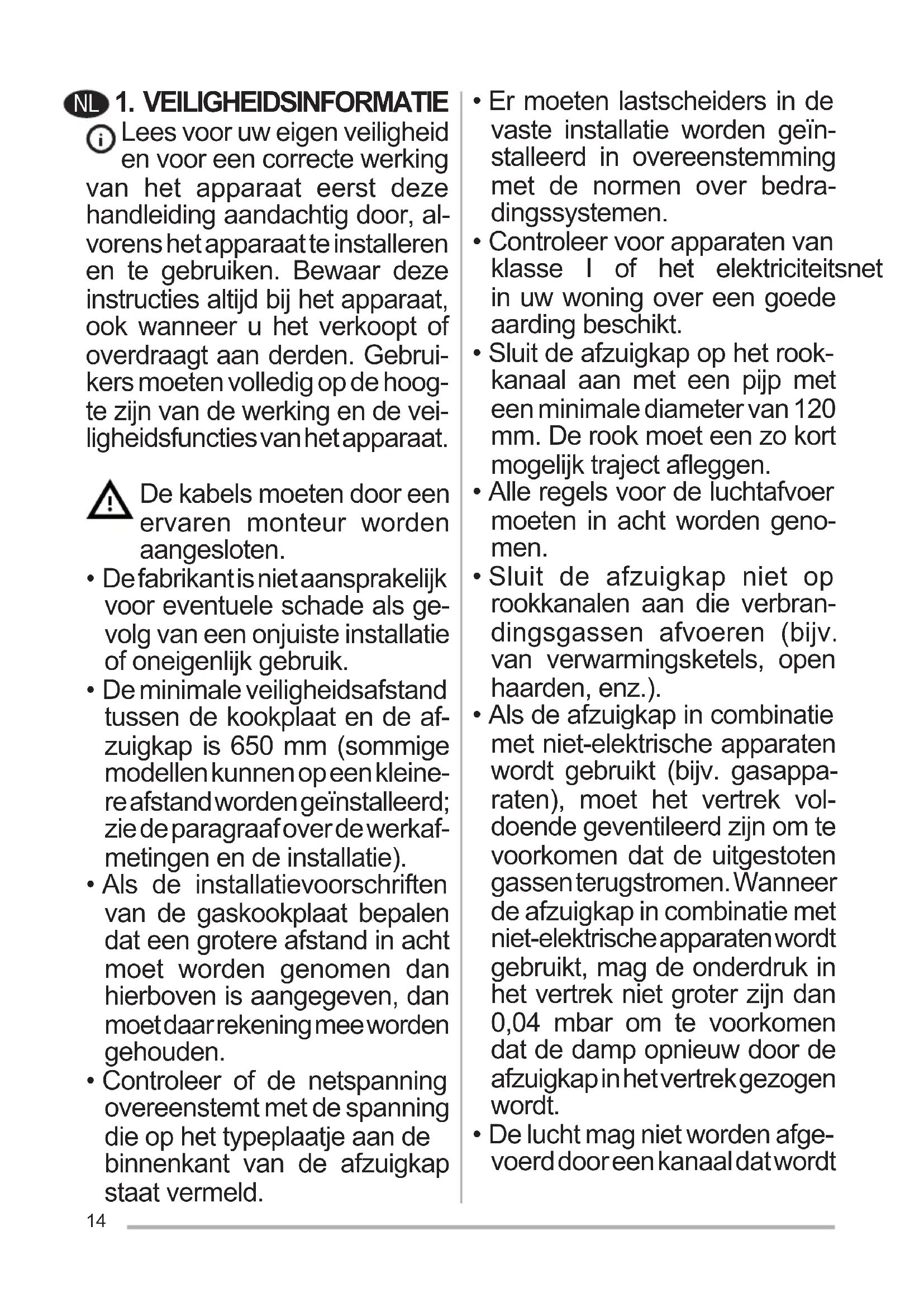 - Gebruik de afzuigkap nooit voor andere doeleinden dan waarvoor hij bedoeld is.