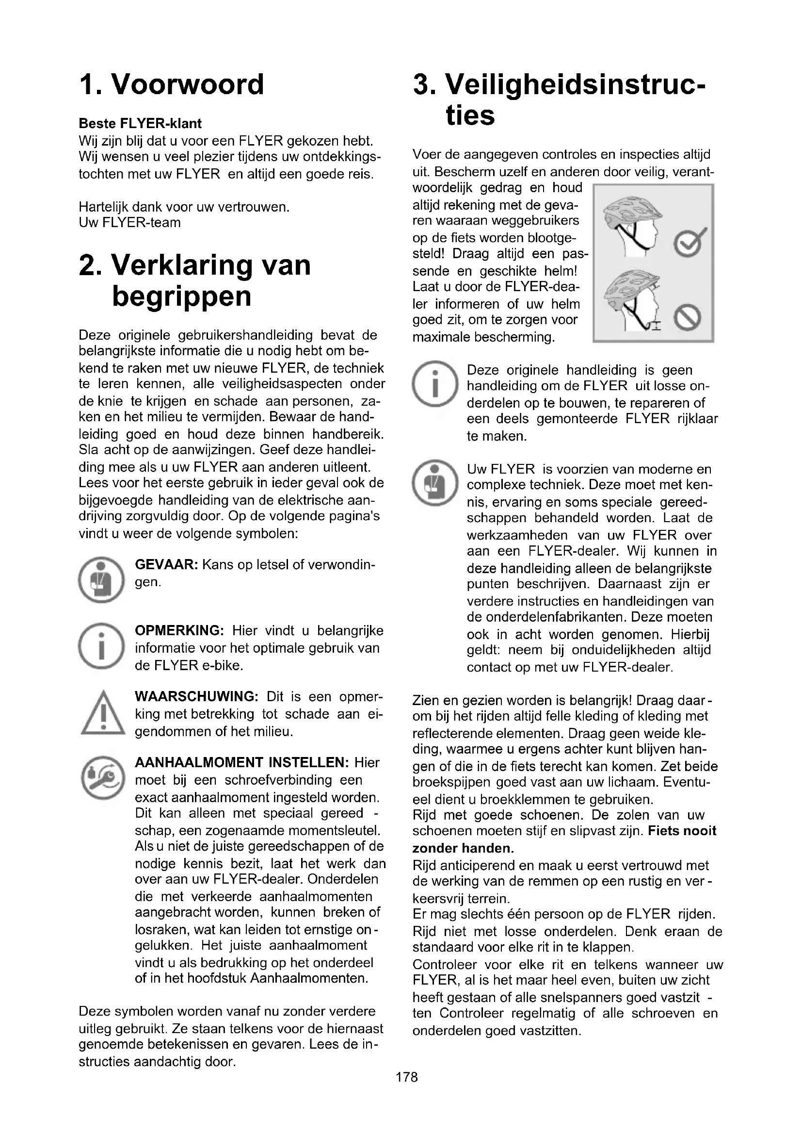 oor een veilig gebruik is het echter noodzakelijk de volledige handleiding te lezen. Deze handlei- ding gaat ervan uit dat alle gebruikers van deze FLYER e-bike over voldoende basisvaardighe- den beschikken voor het omgaan met etsen