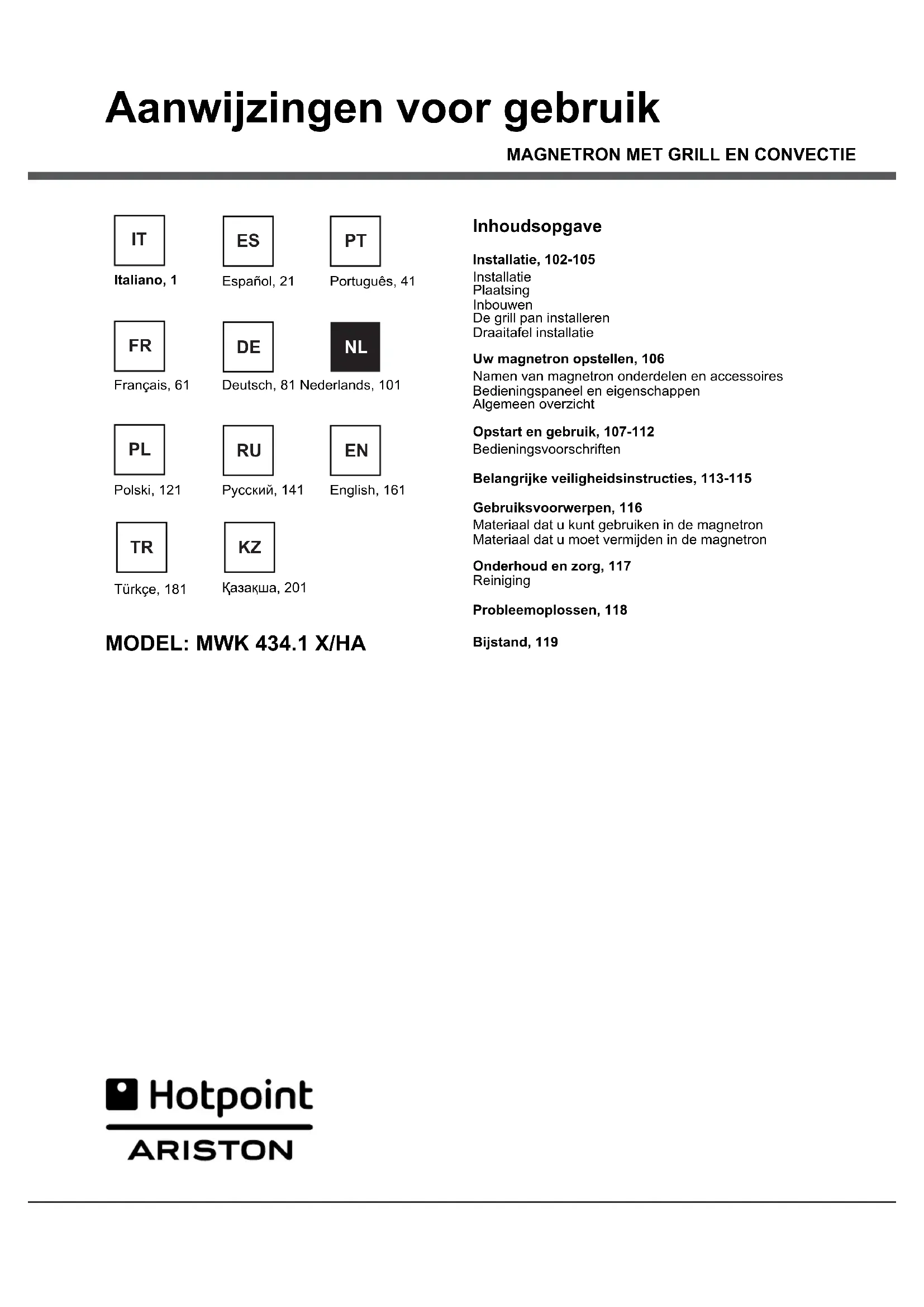 GEBRUIKSAANWIJZING MWK 434.1 XHA HOTPOINT-ARISTON