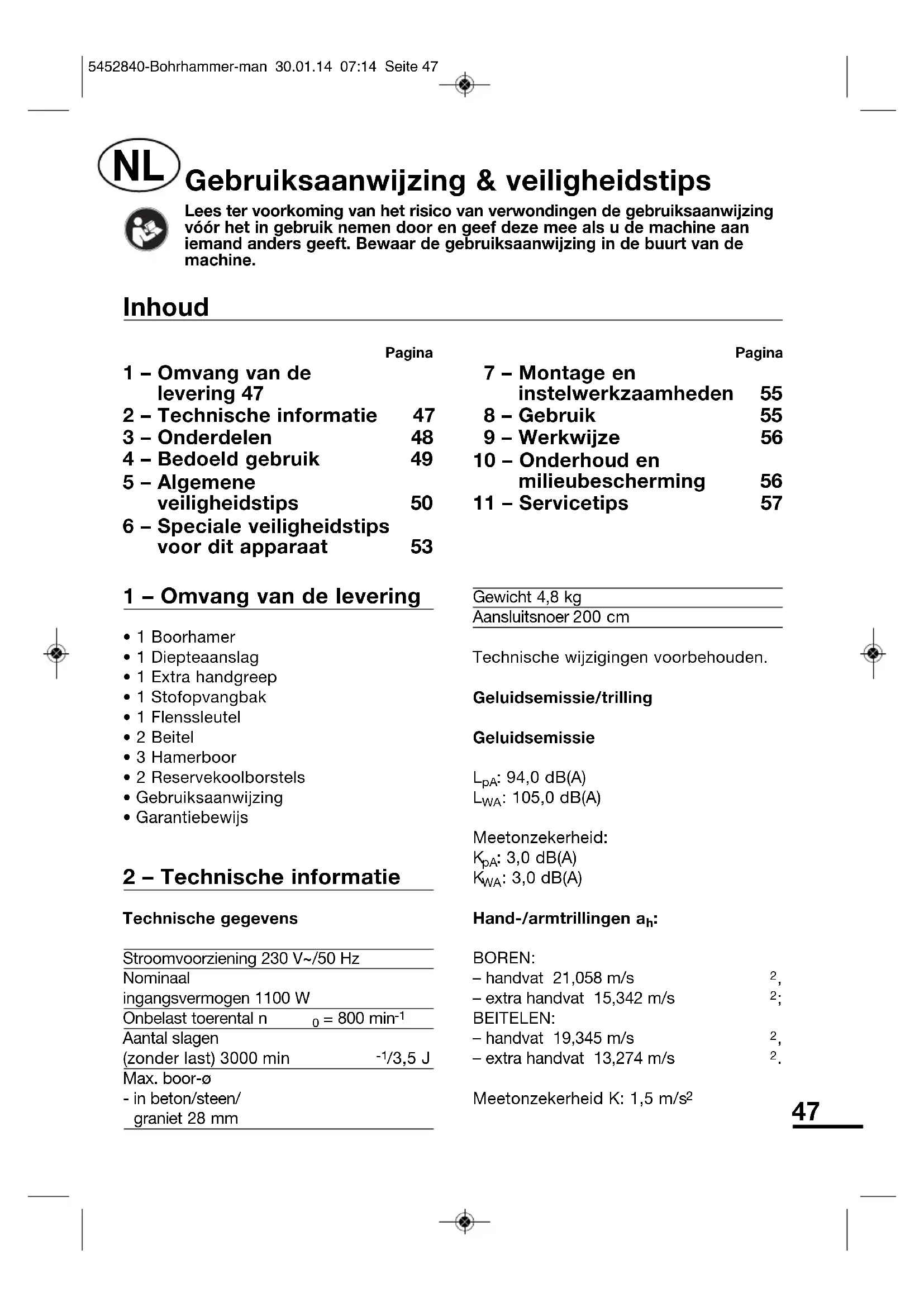 | 1 - Omvang van de levering 47 | 55 | ||