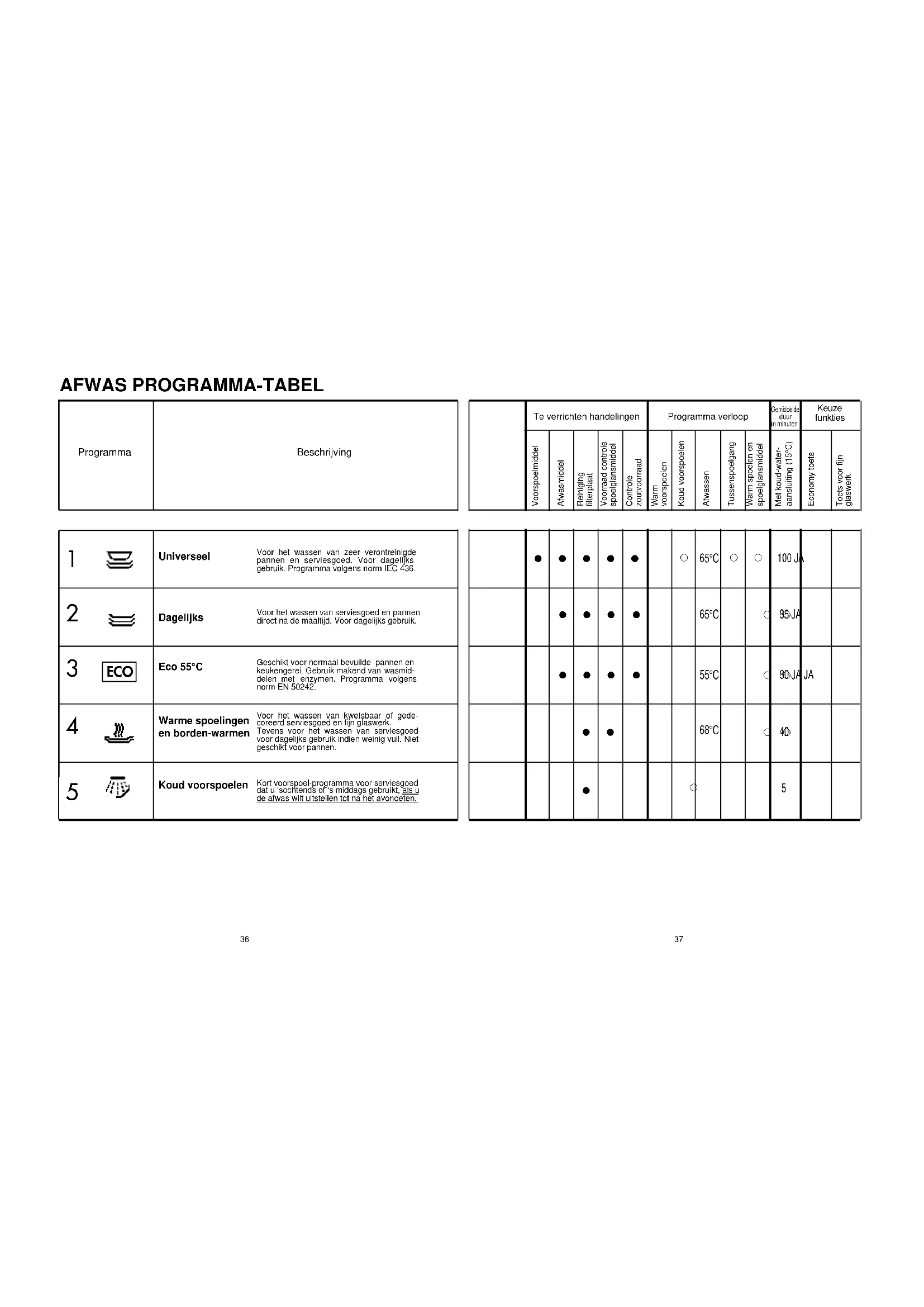 Gebruik de afwasprogrammabeloor het kiezen van het meest geschiktte programme.