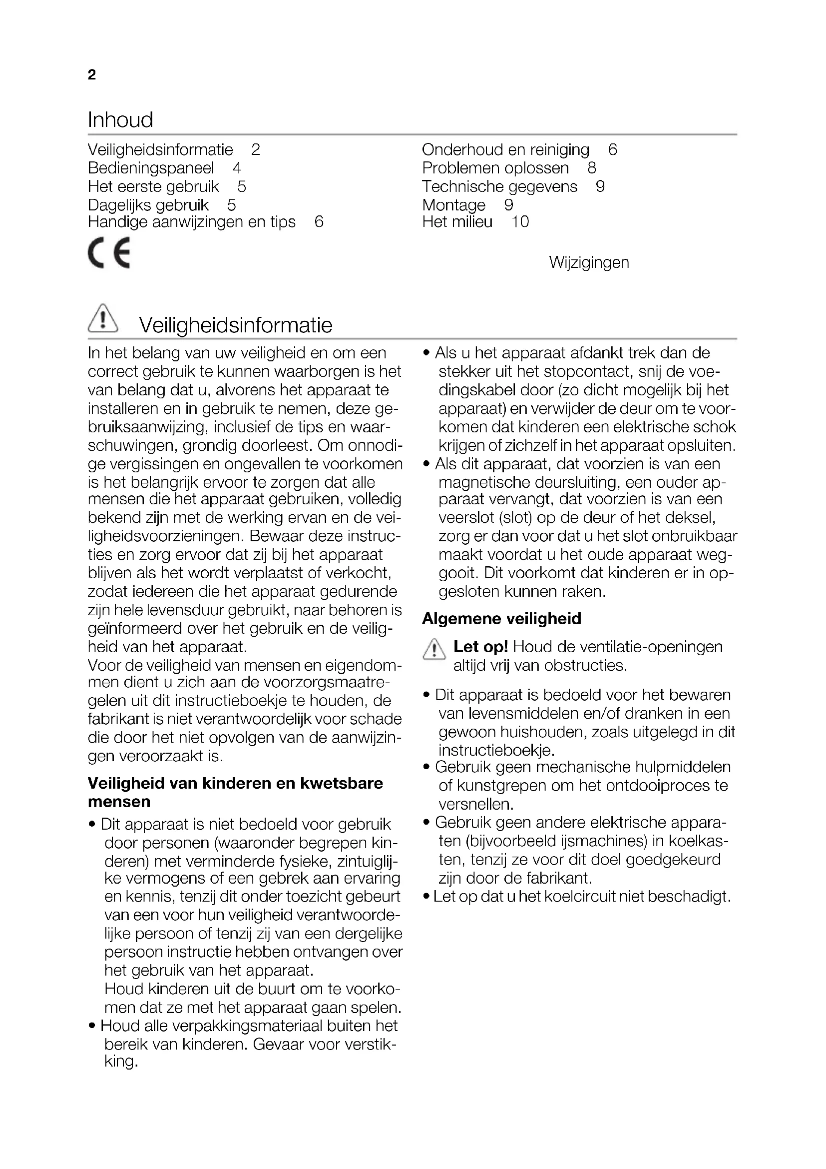 - Als dit apparaat, dat voorzien is van een magnetische deursluiting, een ouder ap- paraat vervangt, dat voorzien is van een veerslot (slot) op de deur of het deksel, zorg er dan voor dat u het slot onbruikbaar maakt voordat u het oude apparaat weg- gooit. Dit voorkomt dat kinderen er in op- gesloten kunnen raken. Algemene veiligheid Let op! Houd de ventilatie-openingen altijd vrij van obstructies.