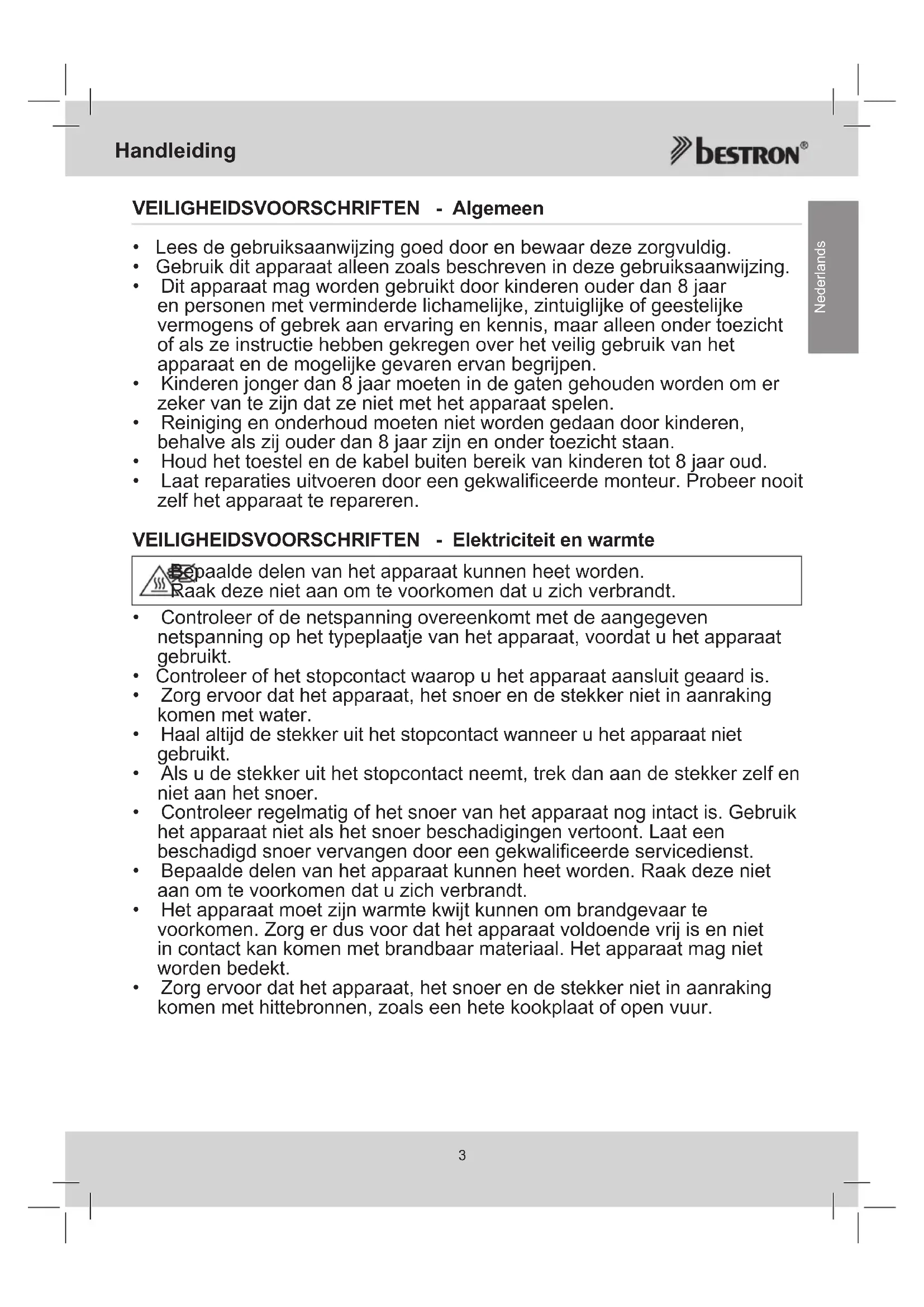 Nederlands VEILIGHEIDSVOORSCHRIFTEN - Algemeen