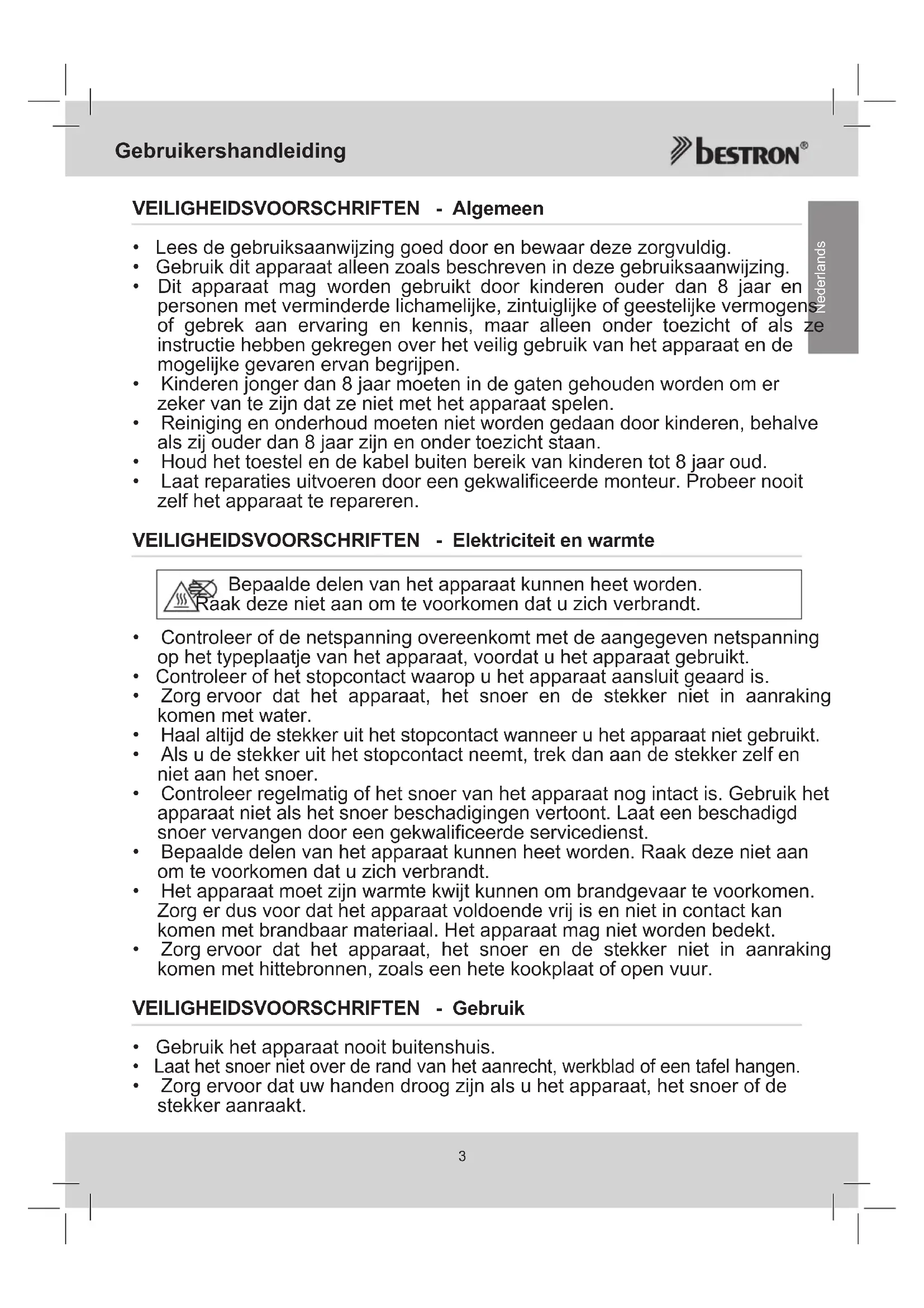 Nederlands VEILIGHEIDSVOORSCHRIFTEN - Algemeen