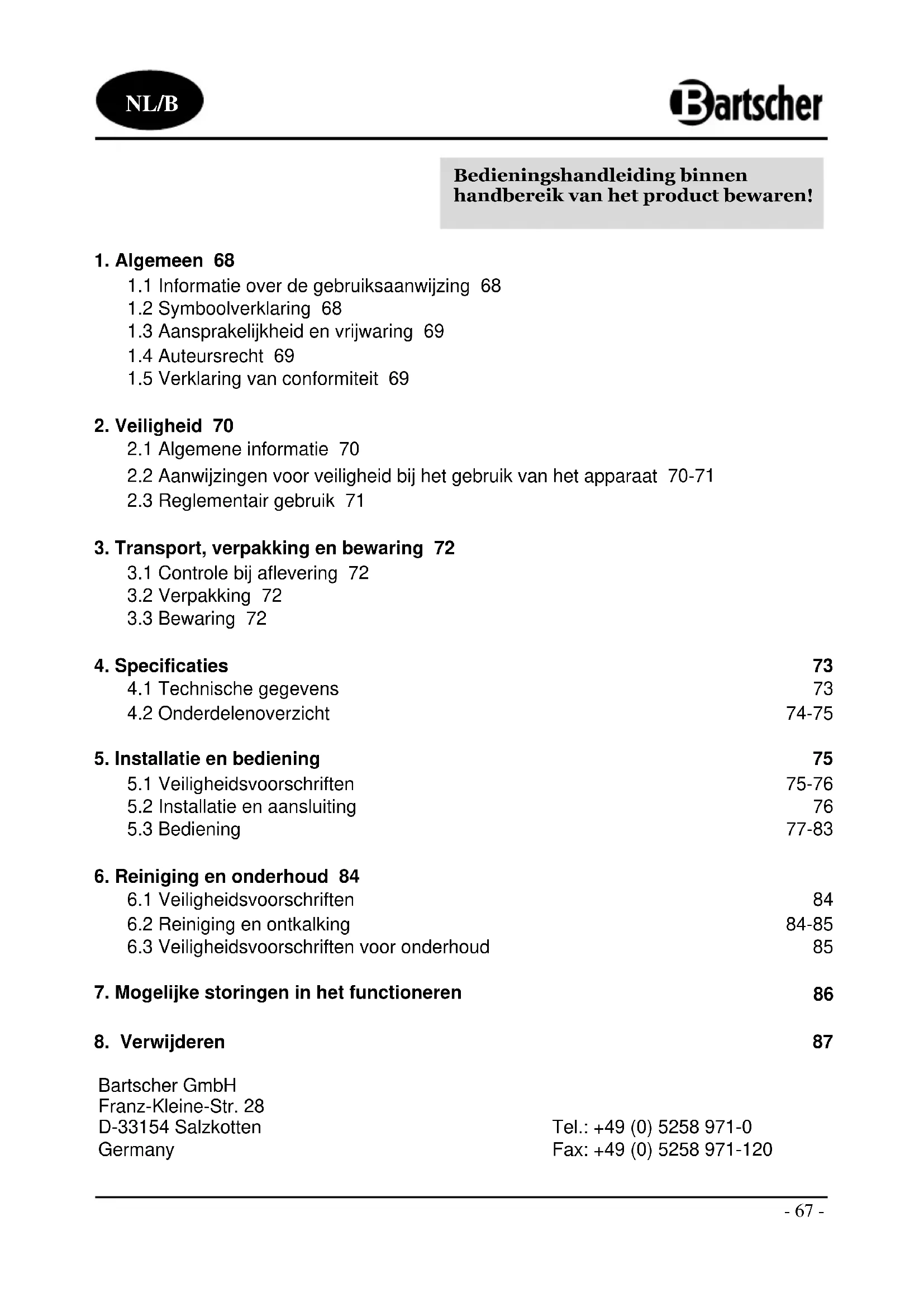 6.1 Veiligheidsvoorschriften 84