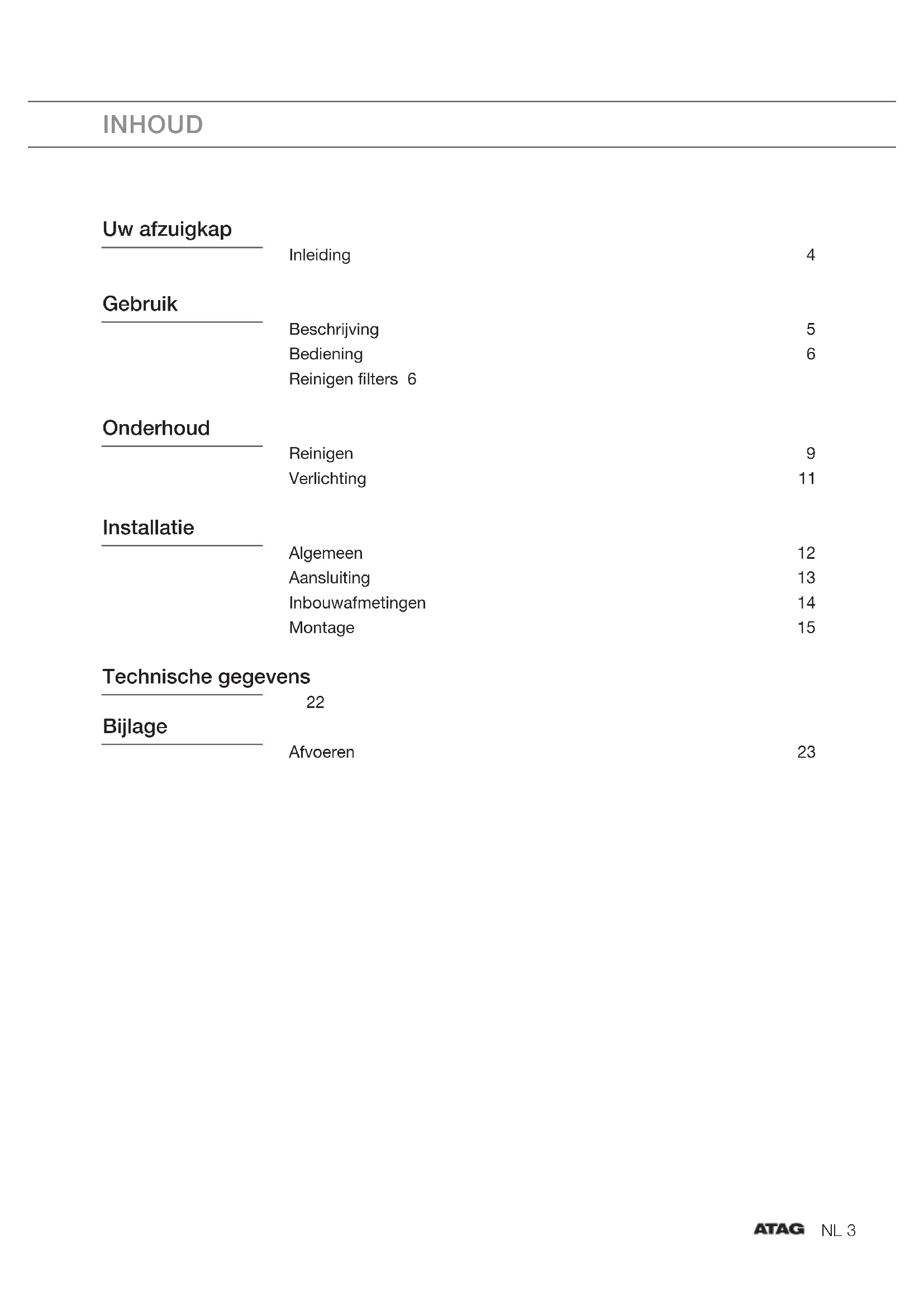 Bijlage Afvoeren 23NL 4 Inleiding Na het lezen van deze gebruiksaanwijzingen, zult u snel vertrouwd raken met alle mogelijkheden van dit apparaat. Lees de veiligheidsvoorschriften en hoe u het apparaat moet onderhouden. Bewaar de instructies voor installatie en gebruik. Dit kan nuttig zijn voor latere raadplegingen. Lees voor gebruik eerst de separate veiligheidsinstructies. Op onze website kunt u de meest recente versie van de gebruiksaanwijzing vinden. UW AFZUIGKAPNL 5 GEBRUIK Beschrijving