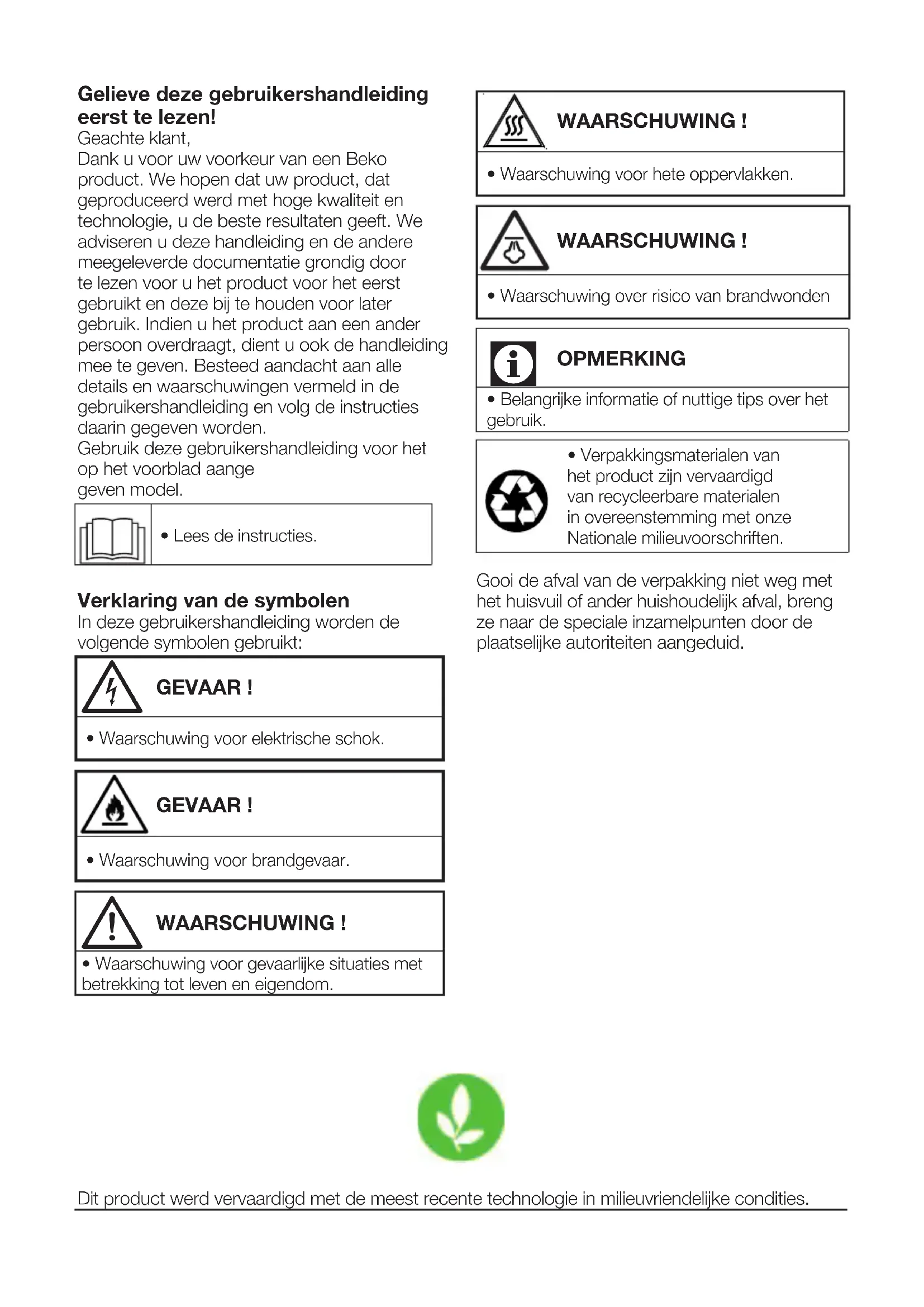 Wasdroger Gebruiker manuel 2960312103_FL/260719.1202 FL FR DS 7536 MM Sèche-linge Manuel de l’utilisateurDit product werd vervaardigd met de meest recente technologie in milieuvriendelijke condities. Gelieve deze gebruikershandleiding eerst te lezen! Geachte klant, Dank u voor uw voorkeur van een Beko product. We hopen dat uw product, dat geproduceerd werd met hoge kwaliteit en technologie, u de beste resultaten geeft. We adviseren u deze handleiding en de andere meegeleverde documentatie grondig door te lezen voor u het product voor het eerst gebruikt en deze bij te houden voor later gebruik. Indien u het product aan een ander persoon overdraagt, dient u ook de handleiding mee te geven. Besteed aandacht aan alle details en waarschuwingen vermeld in de gebruikershandleiding en volg de instructies daarin gegeven worden. Gebruik deze gebruikershandleiding voor het op het voorblad aange geven model.