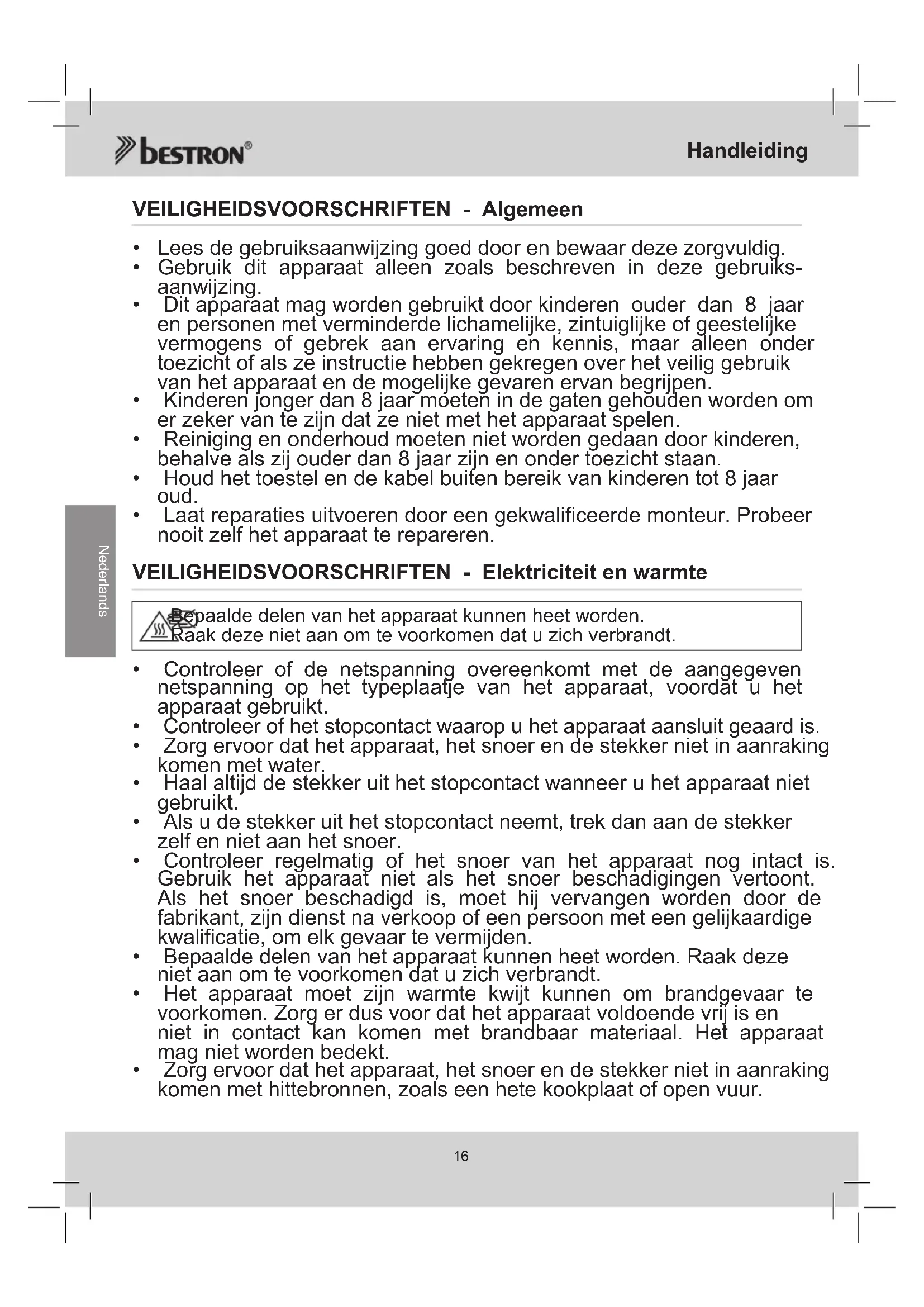 Nederlands VEILIGHEIDSVOORSCHRIFTEN - Algemeen