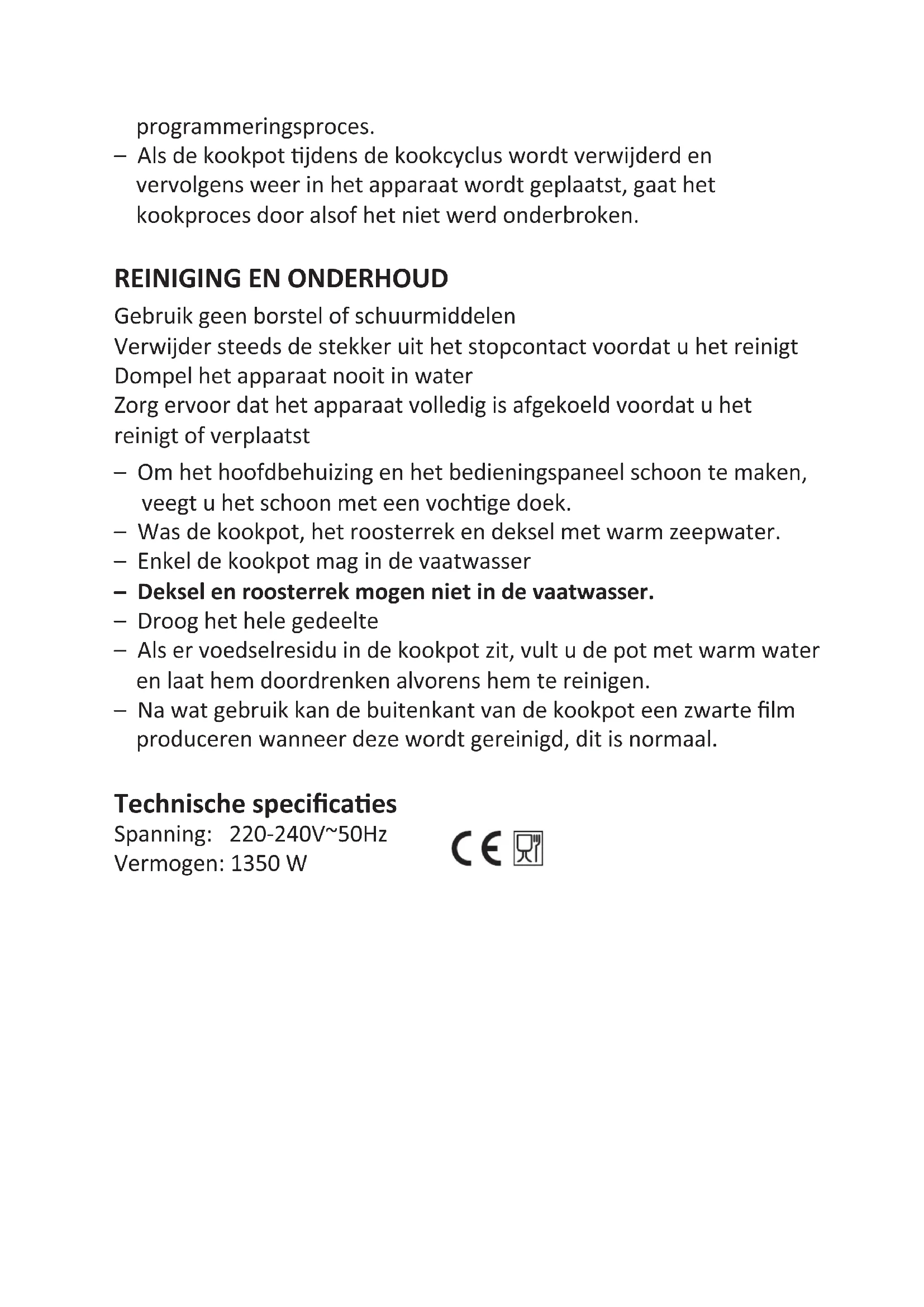 produceren wanneer deze wordt gereinigd, dit is normaal. >&L Spanning: 220-240V~50Hz Vermogen: 1350 W,"O,,(# Het symbool boven en op het apparaat houdt in dat het