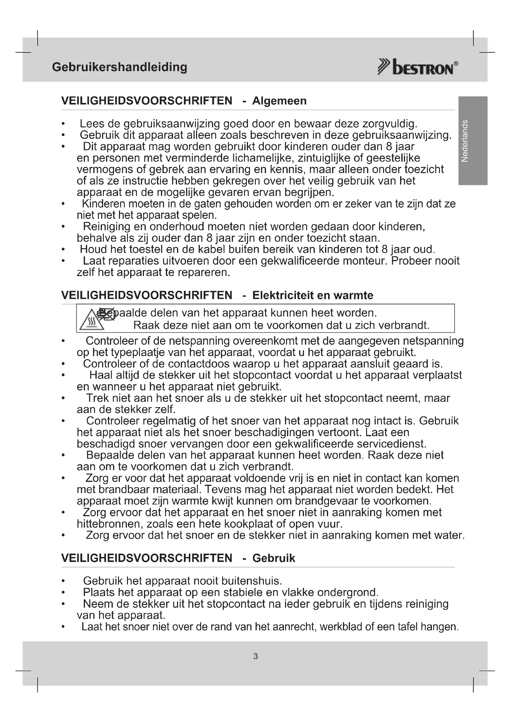 Nederlands VEILIGHEIDSVOORSCHRIFTEN - Algemeen