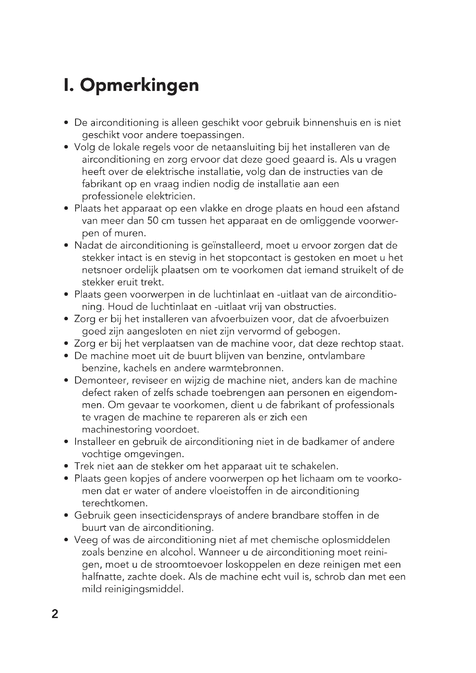 - De airconditioning is alleen geschikt voor gebruik binnenshuis en is niet geschikt voor andere toepassingen.