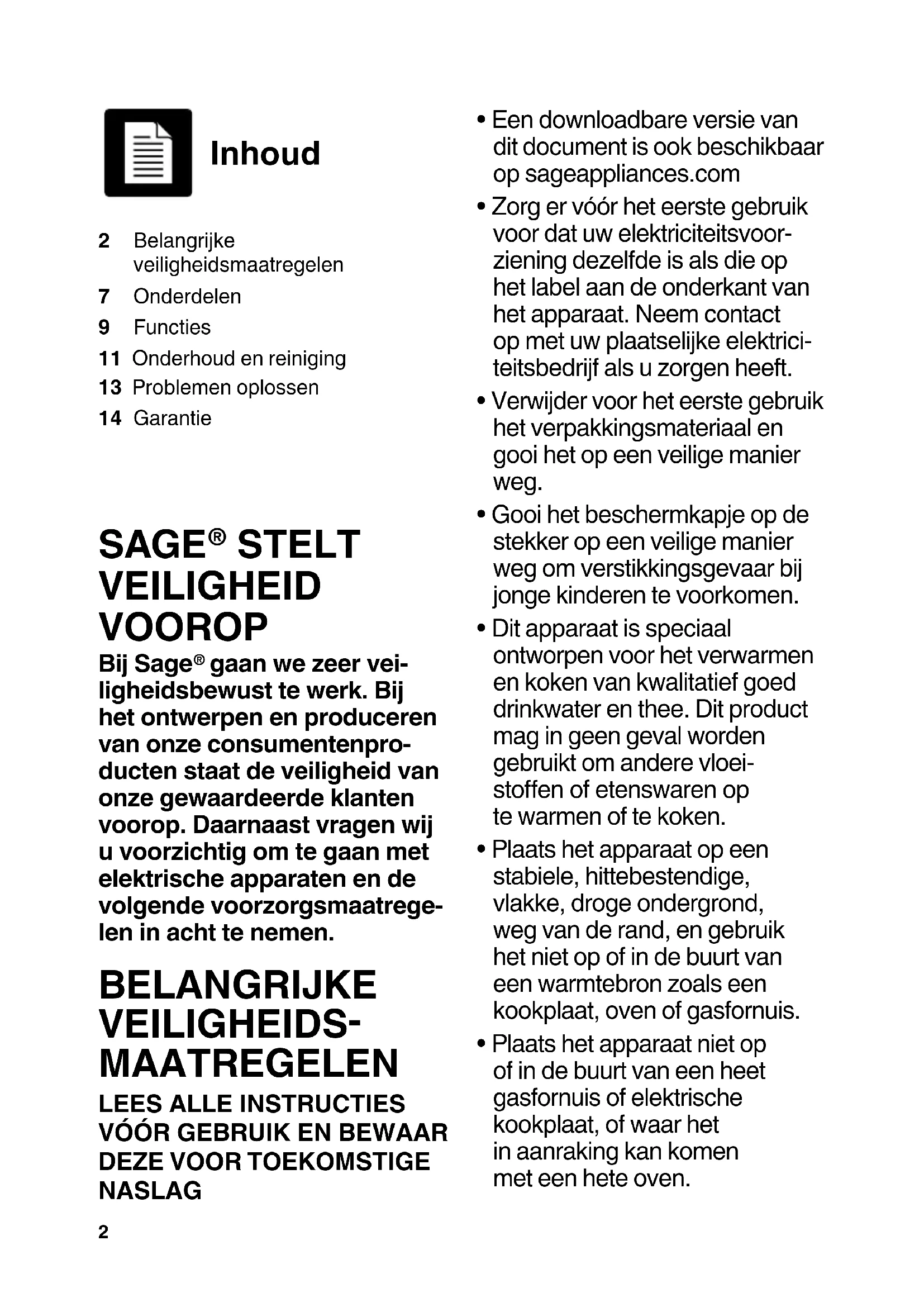 - Een downloadbare versie van dit document is ook beschikbaar op sageappliances.com