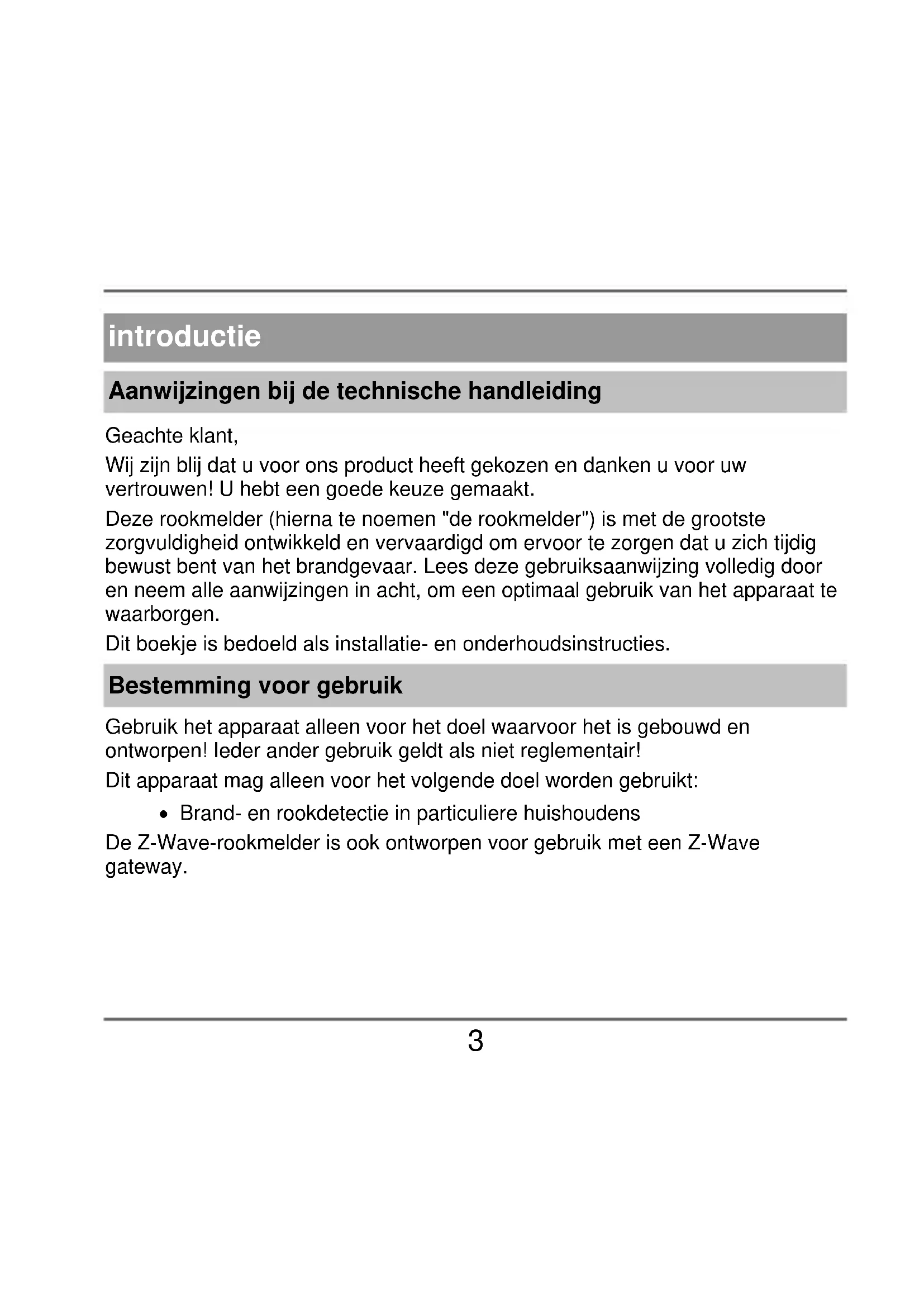 - prestatieverklaring introductie Aanwijzingen bij de technische handleiding Geachte klant, Wij zijn blij dat u voor ons product heeft gekozen en danken u voor uw vertrouwen! U hebt een goede keuze gemaakt. Deze rookmelder (hierna te noemen "de rookmelder") is met de grootste zorgvuldigheid ontwikkeld en vervaardigd om ervoor te zorgen dat u zich tijdig bewust bent van het brandgevaar. Lees deze gebruiksaanwijzing volledig door en neem alle aanwijzingen in acht, om een optimaal gebruik van het apparaat te waarborgen. Dit boekje is bedoeld als installatie- en onderhoudsinstructies. Bestemming voor gebruik Gebruik het apparaat alleen voor het doel waarvoor het is gebouwd en ontworpen! Ieder ander gebruik geldt als niet reglementair! Dit apparaat mag alleen voor het volgende doel worden gebruikt: Brand- en rookdetectie in particuliere huishoudens De Z-Wave-rookmelder is ook ontworpen voor gebruik met een Z-Wave gateway.5 Beperking van aansprakelijkheid Uw rechten zijn beperkt tot de reparatie of vervanging van dit product zoals geleverd. ABUS Security Center aanvaardt geen aansprakelijkheid voor bijzondere, incidentele of gevolgschade, met inbegrip van maar niet beperkt tot inkomstenderving, gederfde winst, beperkingen in het gebruik van de software, verlies of herstel van gegevens, kosten voor vervangende apparatuur, downtime, schade aan eigendommen en claims van derden, als gevolg van en in verband met het gebruik van de software.a. ondanks andere beperkte of impliciete garantiebepalingen of in het geval dat de beperkte garantie niet van toepassing is, is de reikwijdte van de aansprakelijkheid van ABUS Security Center beperkt tot de aankoopprijs van het product. De inhoud van deze handleiding kan zonder voorafgaande kennisgeving worden gewijzigd. ABUS Security-Center GmbH & Co KG, 10/20185 veiligheidsborden uitleg van symbolen De volgende symbolen worden in de handleiding of op het apparaat gebruikt: icoon signaalwo ord ernstgraad p. 263