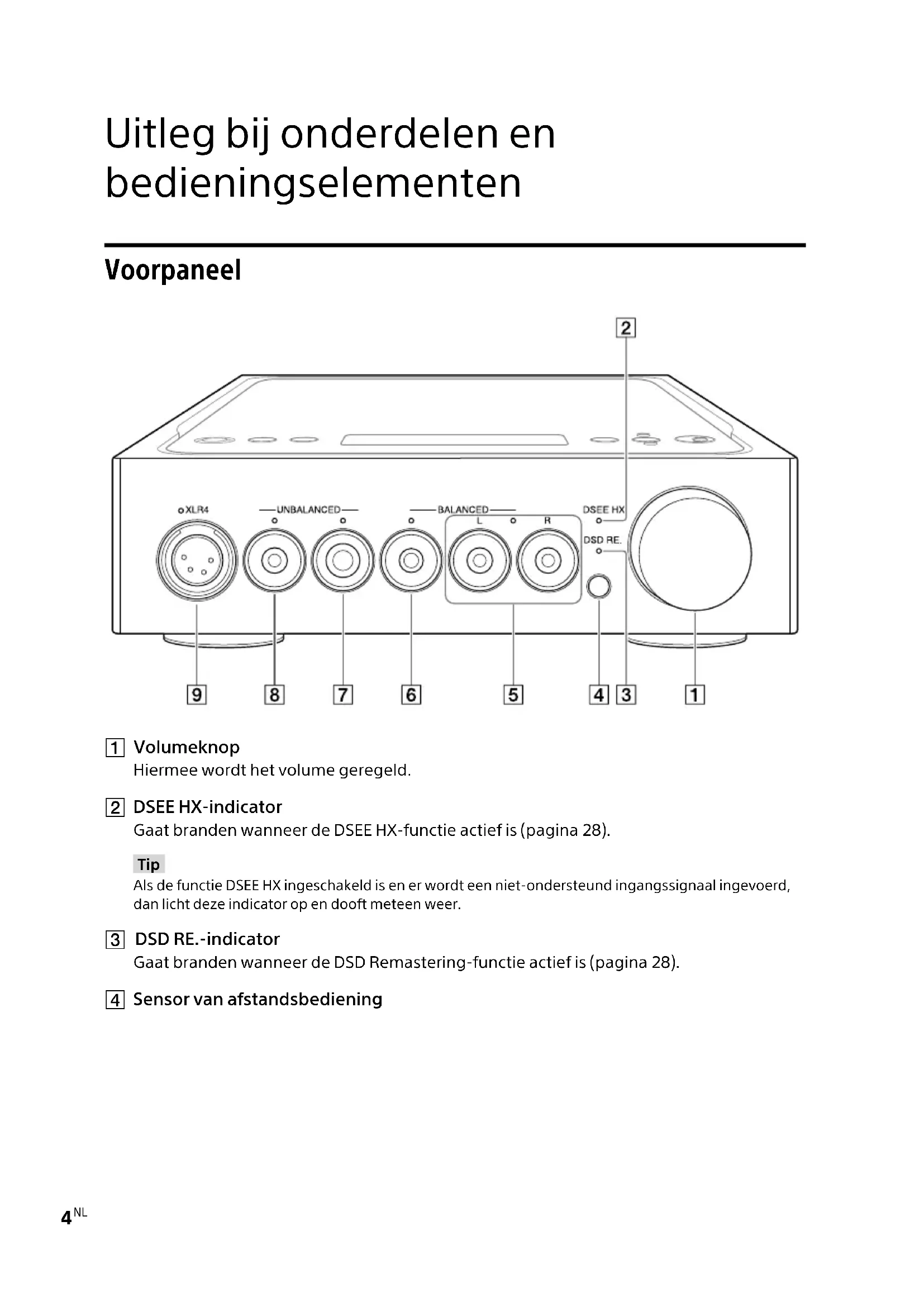 9 XLR4-hoofdtelefoonaansluiting (gebalanceerd met 4 pinnen)
