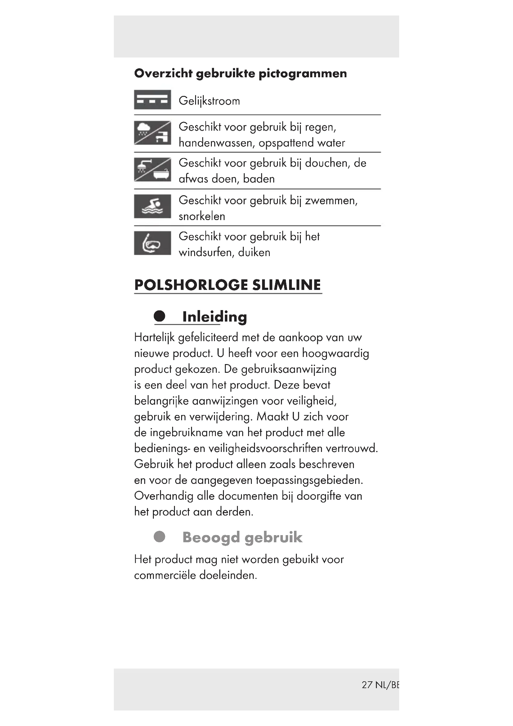 - Záruka CZ Seznam použitých piktogramů Stejnosměrný proud Vhodné k používání v dešti, při mytí rukou, ve stříkající vodě Vhodné k používání při sprchování, oplachování, koupání Vhodné k používání při plavání, šnorchlování Vhodné pro používání při windsurfingu, potápění p. 3934