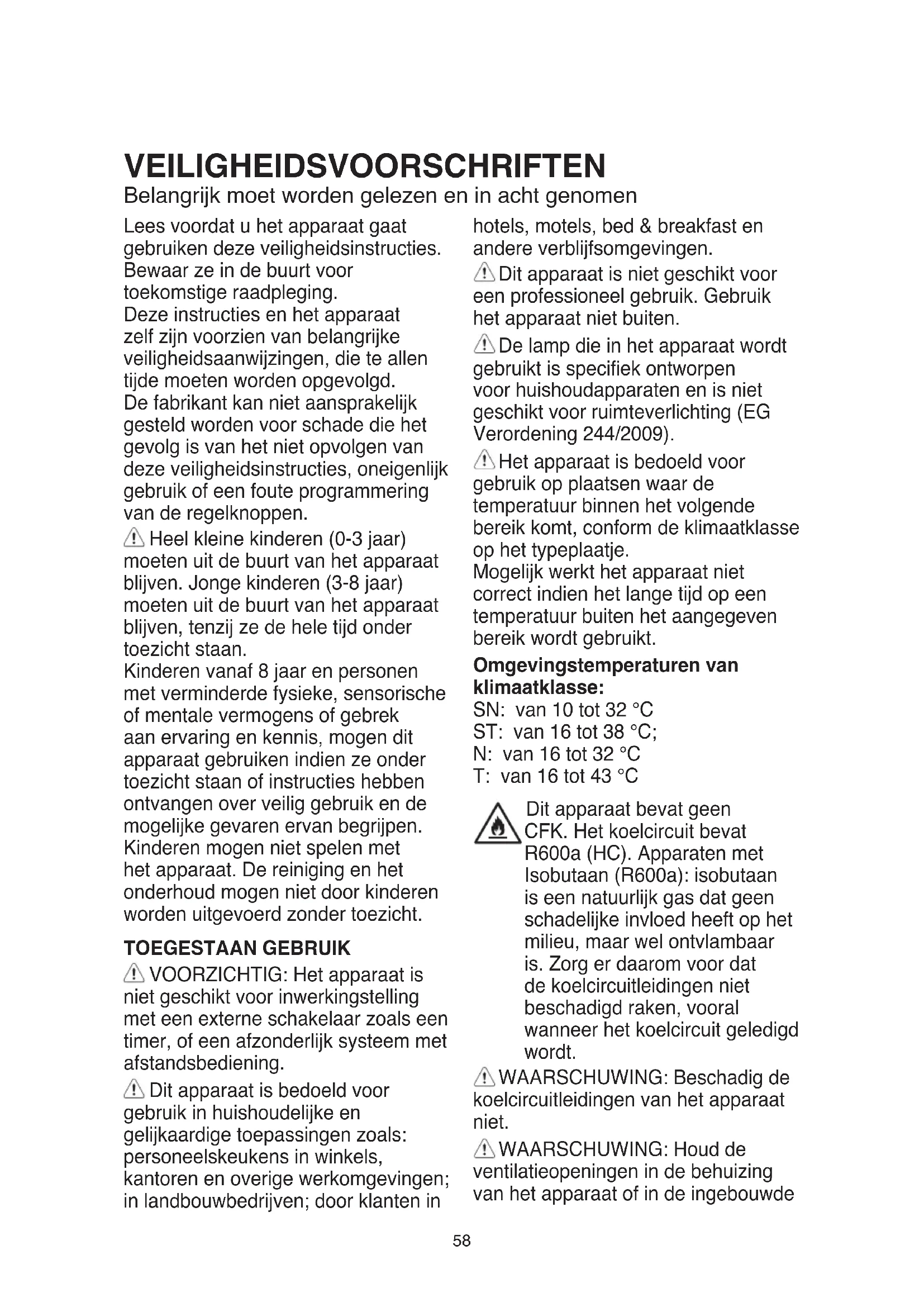 - PROVISIEKAMERS (zonder steraanduiding): Provisiekamers (koelers) hebben geen diepvriescompartiment maar kunnen koelen tot 4 - 6°C. Waarschuwingen voor temperatuurafstellingen