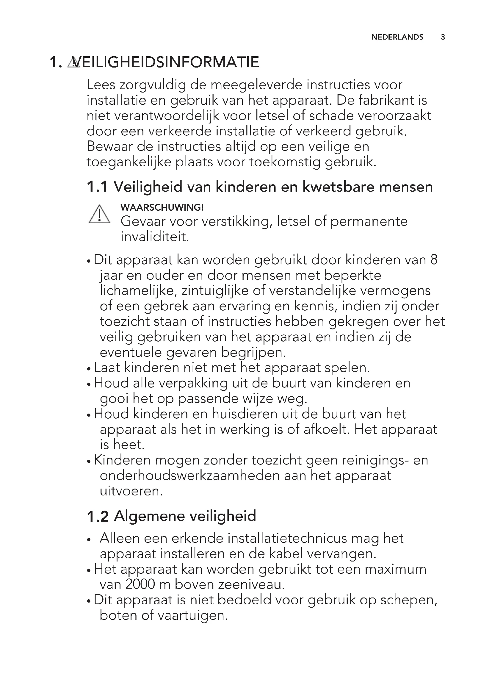 - Het apparaat kan worden gebruikt tot een maximum van 2000 m boven zeeniveau.