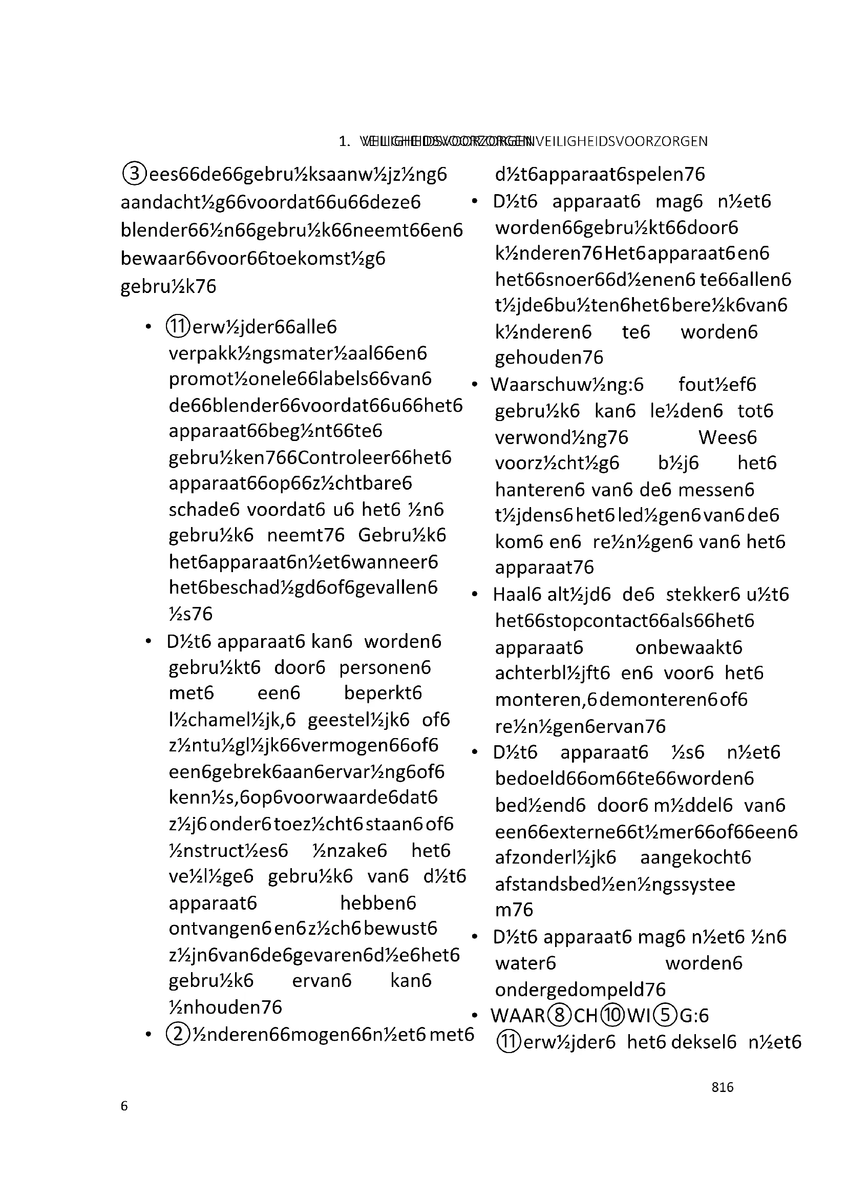 - Waarschuwing: foutief gebruik van dit apparaat kan verwonding veroorzaken. Wees voorzichtig bij het hanteren van de messen tijdens het ledigen van de kom en het reinigen van het apparaat.
