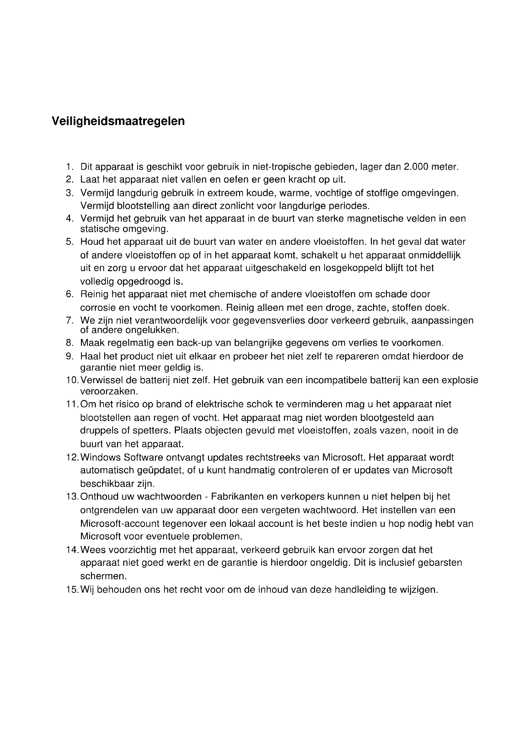 In de gebruikershandleiding worden ook de functies van uw nieuwe laptop uitgelegd. Lees deze gebruikershandleiding aandachtig door voor u dit product gebruikt. Het wordt aanbevolen om het apparaat volledig op te laden voor het eerste gebruik.