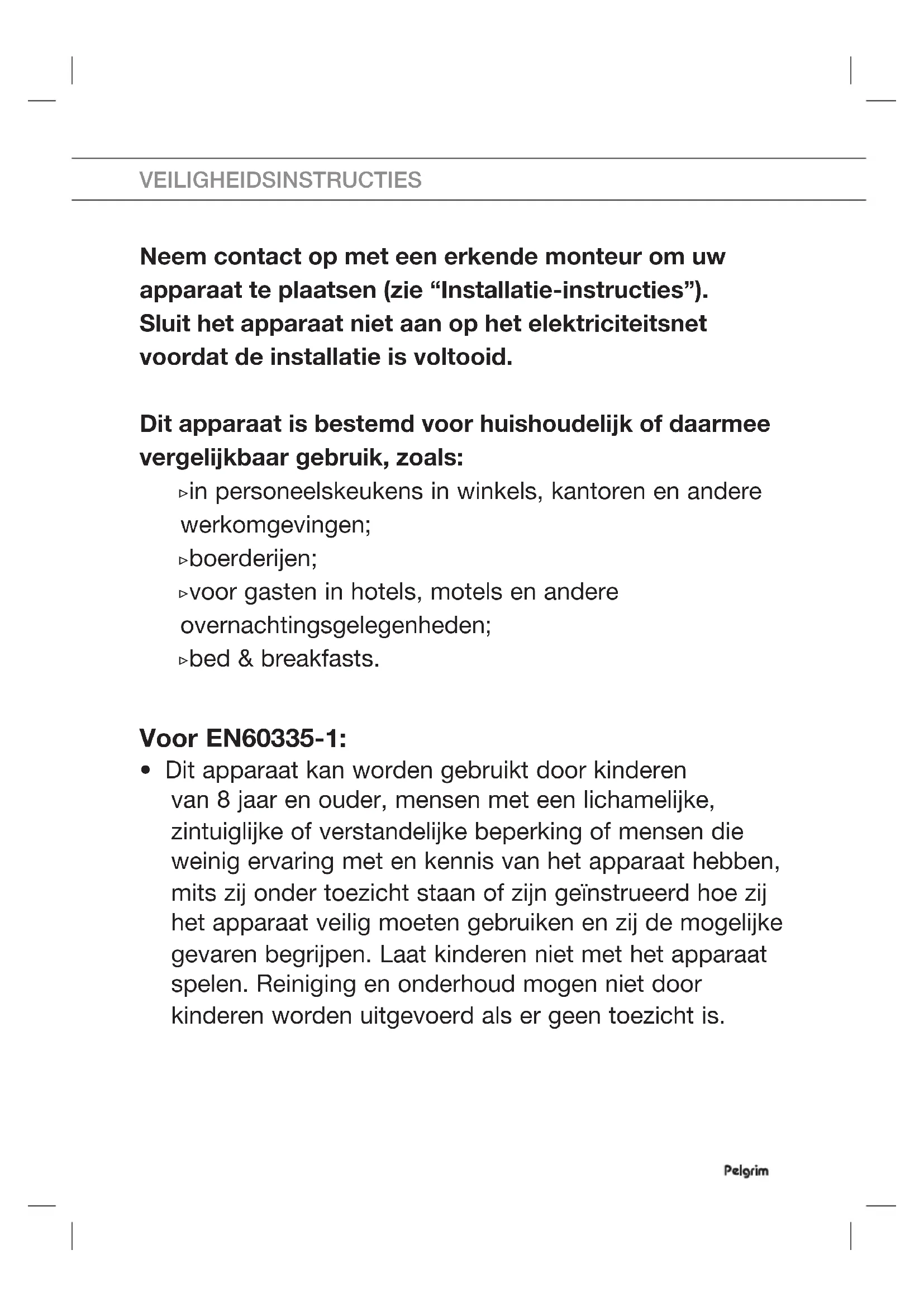 GEBRUIKSAANWIJZING GVW100L Pelgrim