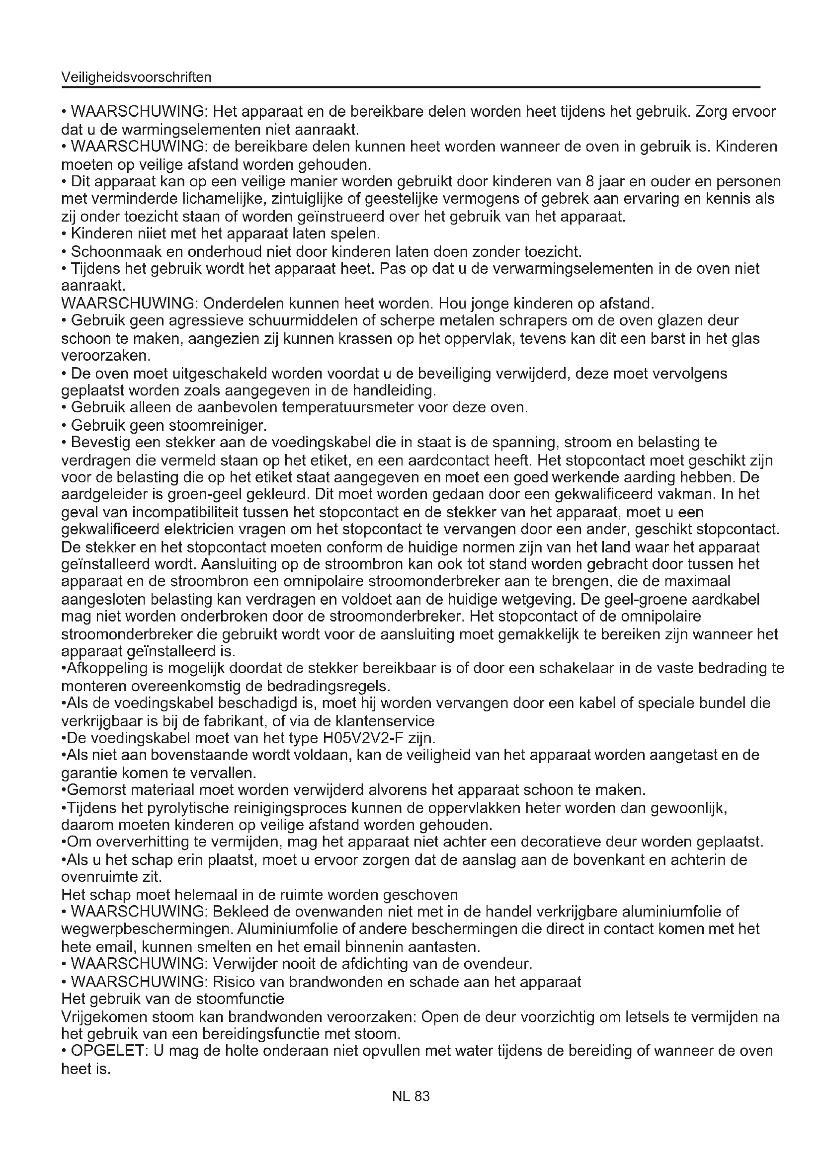 Overzicht NL 84 Ovenreiniging en onderhoud Algemene Instructies