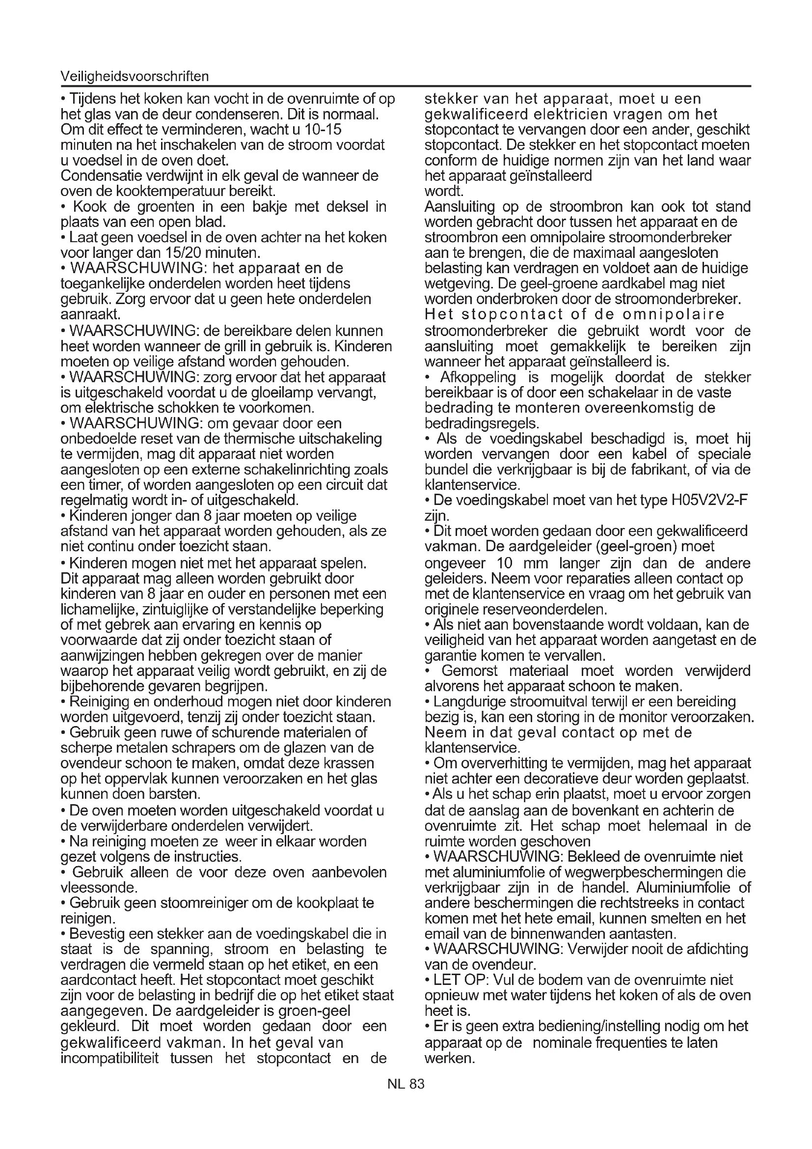 Overzicht NL 84 Ovenreiniging en onderhoud Algemene Instructies