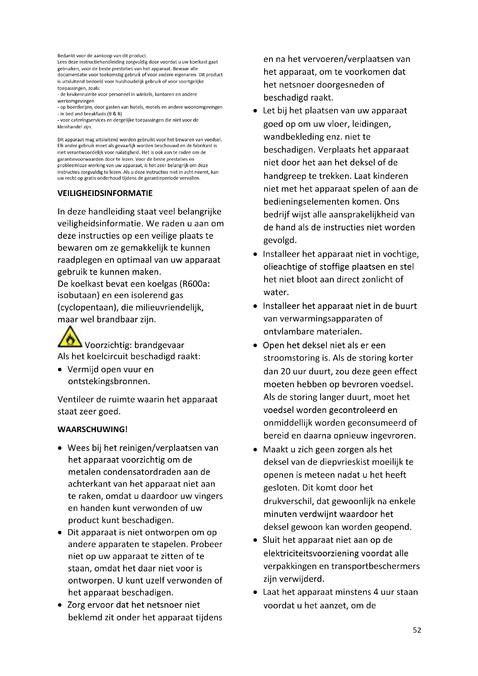 - Deze vriezer mag alleen worden gebruikt voor het beoogde doel (d.w.z. het bewaren en invriezen van eetbare voedingsmiddelen).