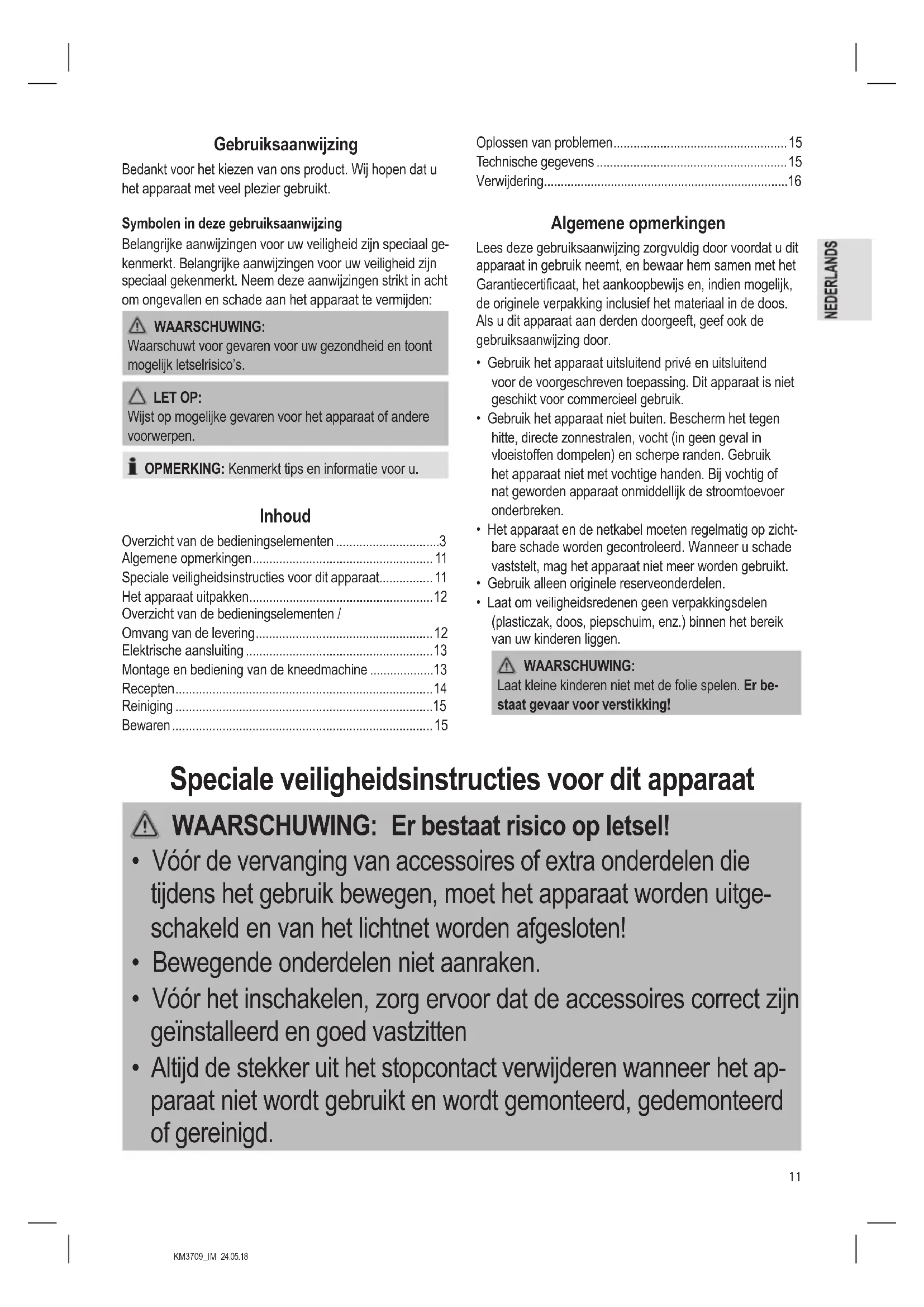 - Speciale veiligheidsinstructies voor dit apparaat p. 11