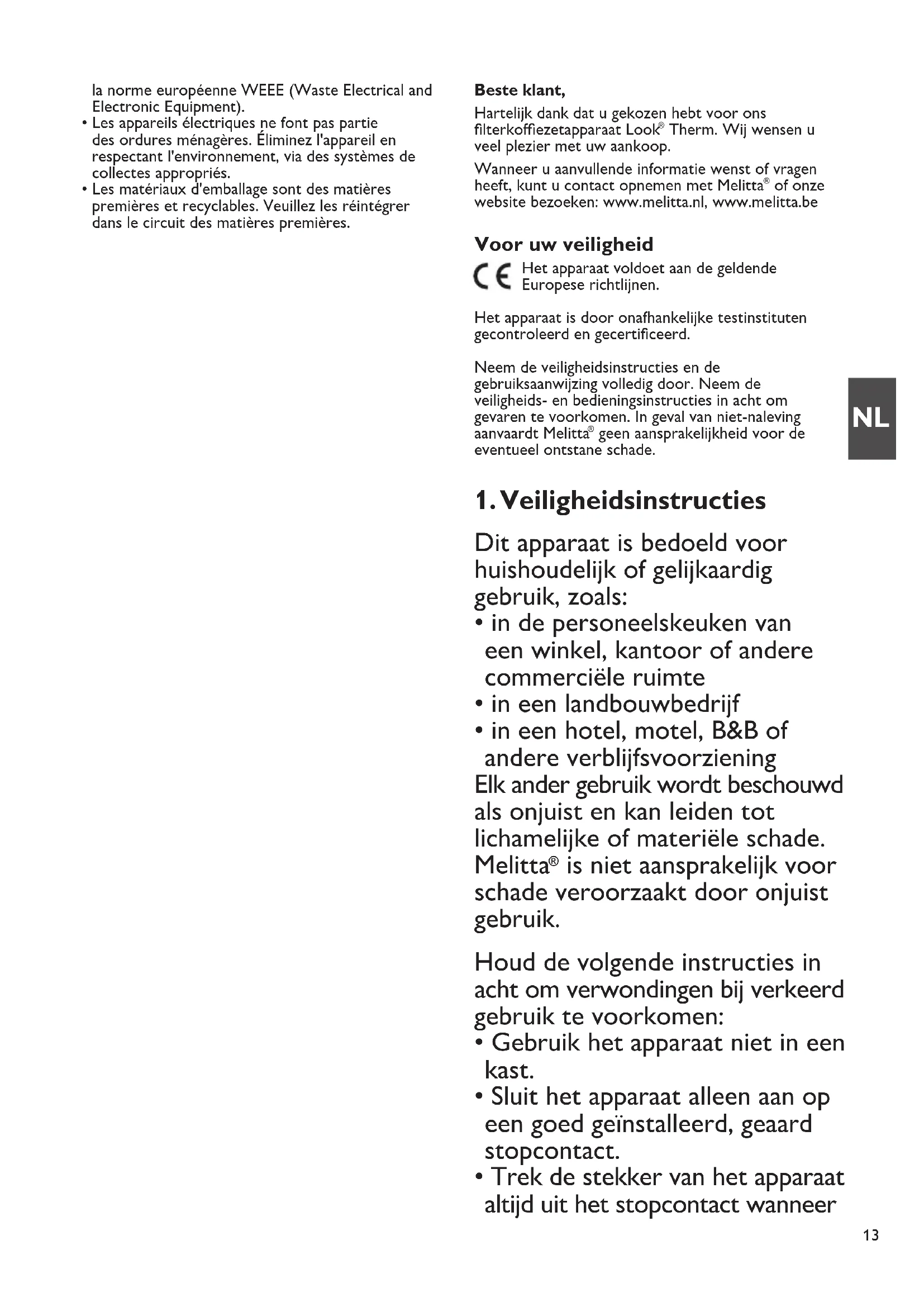 of onze website bezoeken: www.melitta.nl, www.melitta.be Voor uw veiligheid