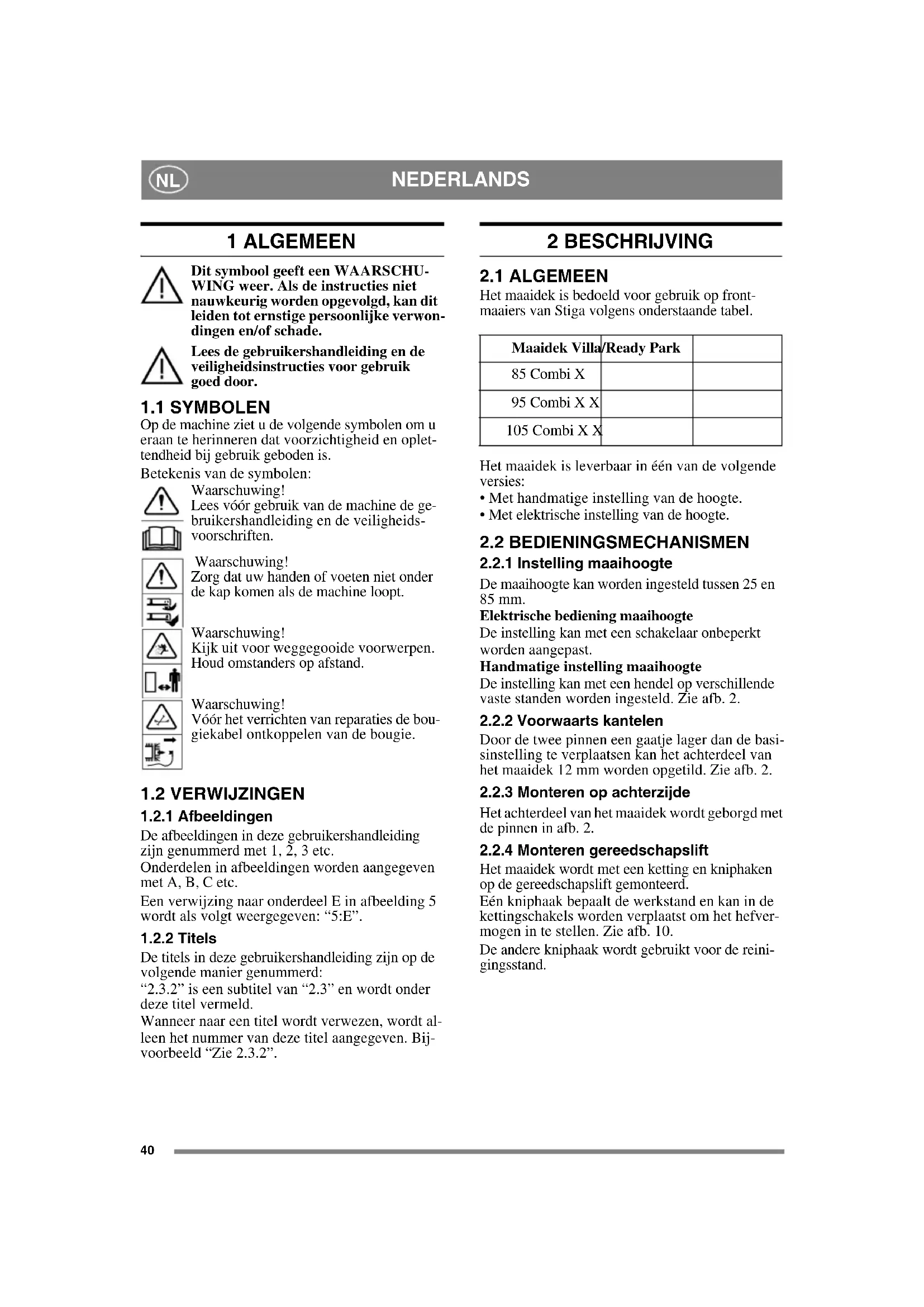 GEBRUIKSAANWIJZING VILLA 95 COMBI STIGA