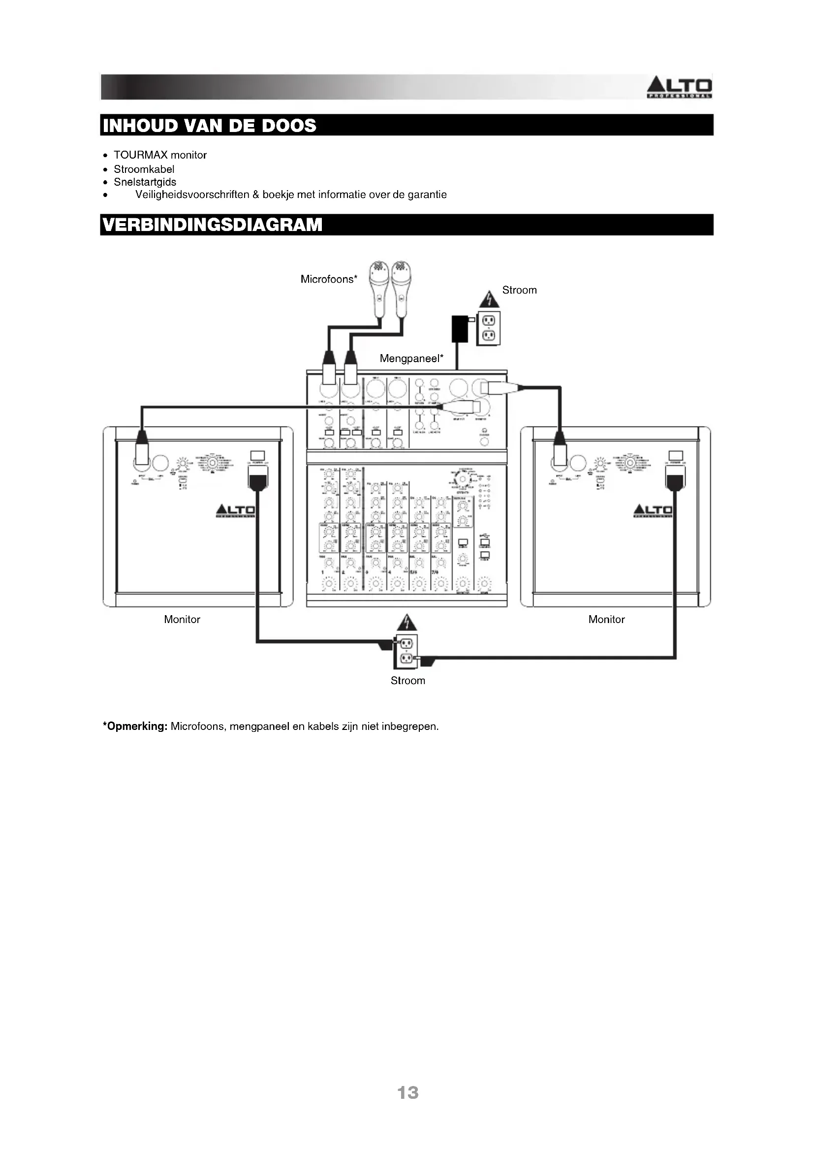 *Opmerking: Microfoons, mengpaneel en kabels zijn niet inbegrepen. Microfoons* Stroom Stroom Monitor Mengpaneel* Monitor14 OVERZICHT ACHTERPANEEL