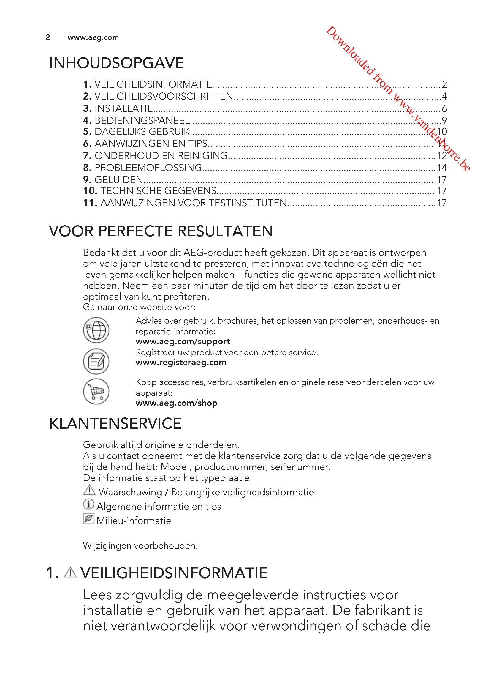 VEILIGHEIDSINFORMATIE Lees zorgvuldig de meegeleverde instructies voor installatie en gebruik van het apparaat. De fabrikant is niet verantwoordelijk voor verwondingen of schade die www.aeg.com