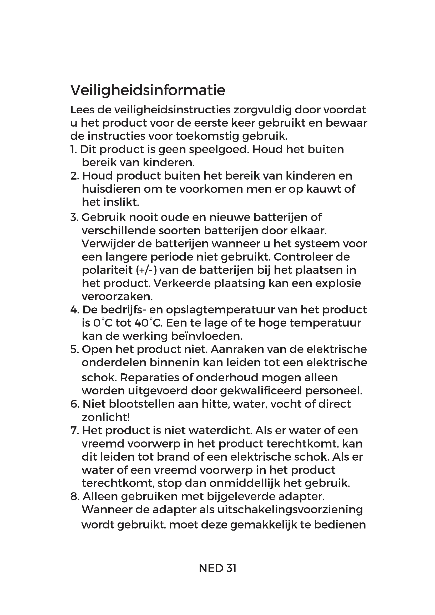 8. Alleen gebruiken met bijgeleverde adapter.