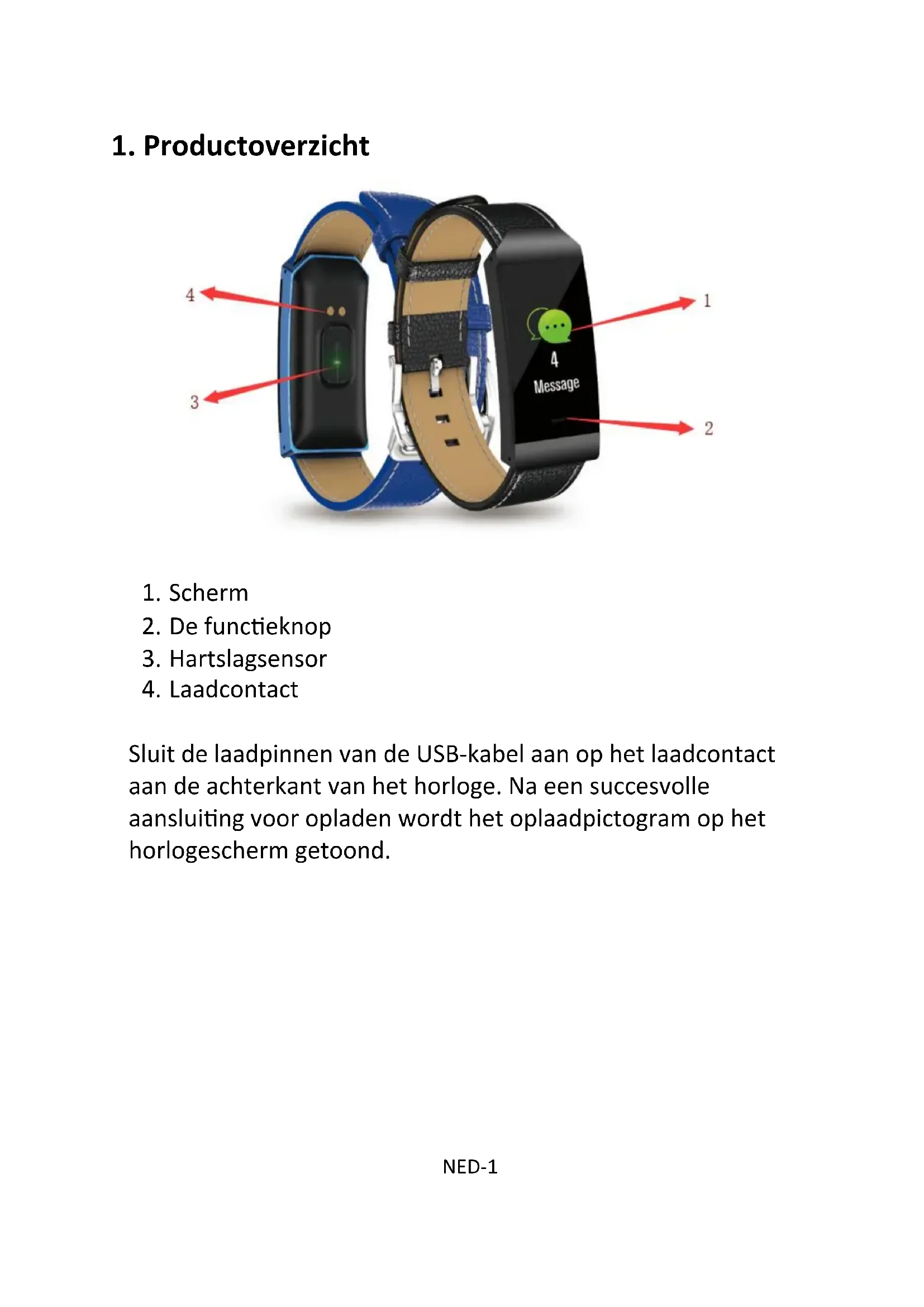 Laadcontact Laadpinnen NED-2horloge te voltooien.