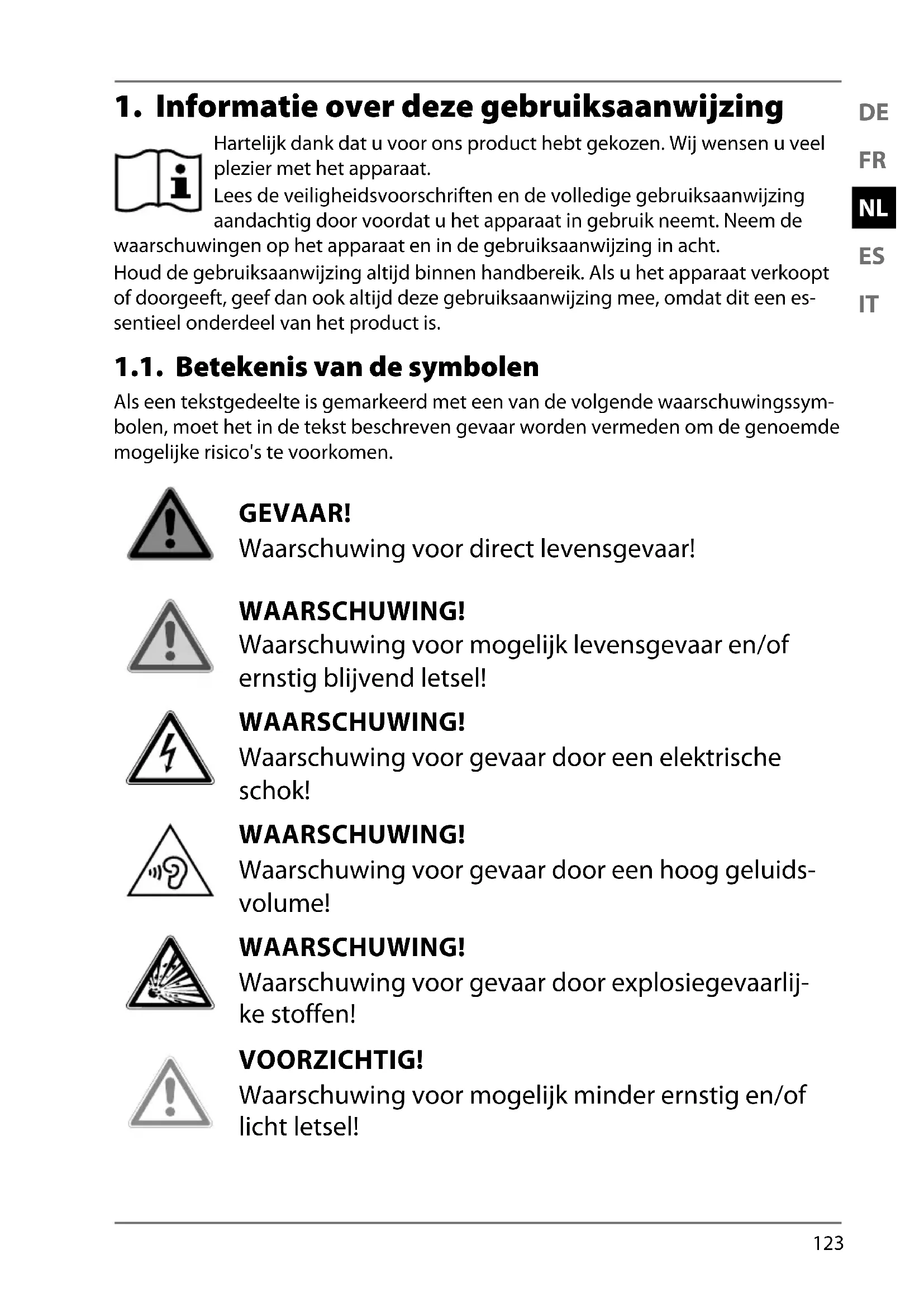 1. Informatie over deze gebruiksaanwijzing ............................................. 123